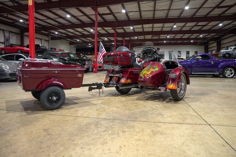 GR Auto Gallery is excited to present this 2000 Harley-Davidson FLH (Electric Glide), a classic example of Harley elegance with a little bit of a twist. This example includes the Harley-Davidson TLE (Touring Sidecar), making this touring bike a three person machine. These sidecars were included from factory only for the FLH touring models, and more specifically would be color matched to the bike for the 100th Anniversary of Harley-Davidson. Also included is a towing trailer for ample amounts of storage for those long roadtrips.