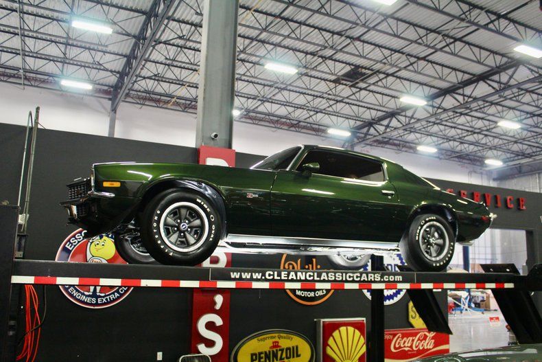 This exceptional 1971 Chevrolet Camaro Z/28 Coupe stands out as a premier investment-grade example of American muscle, featuring a highly desirable numbers-matching 350ci V8 rated at 330 horsepower paired with an engaging 4-speed manual transmission. A true two-owner car, it presents beautifully in its correct Antique Green exterior over a rich Dark Saddle bucket seat interior, offering a distinctive and authentic aesthetic. This Z/28 is defined by its integrity, boasting original body panels, correct colors, and strong factory documentation that verify its pedigree. (Protect-O-Plate) With its rare combination of a numbers-matching drivetrain, manual gearbox, and preserved history, this Camaro is a standout collector's piece ready for the road or the show field.