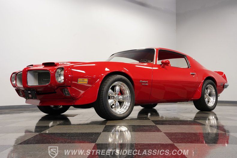 Rocking high-impact red paint and a dual-scooped hood that was arguably one of the most distinctive exterior features of its era, this 1970 Pontiac Firebird Formula 400 Restomod pretty much pegs the meter on classic curb appeal. Step up closer, and you can't help but notice the badging that proclaims its special edition, Formula 400 status, a status that is properly documented via its VIN plate. So, this sharp-looking ride offers bona fide collectability to combine with its head-turning great looks. Cruising on a set of 17" wheels that accentuate its tastefully aggressive appearance, this rarely seen muscle car sports consistent body panel gaps on all sides, and a brief cut and buff session will elevate its exterior to top form.