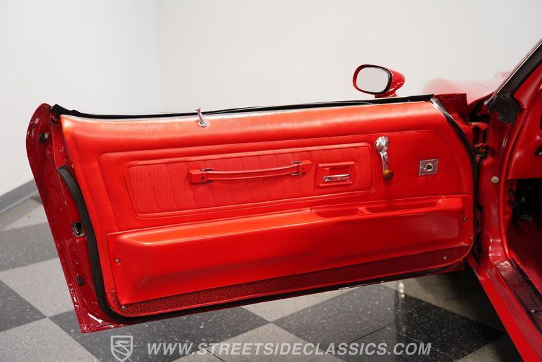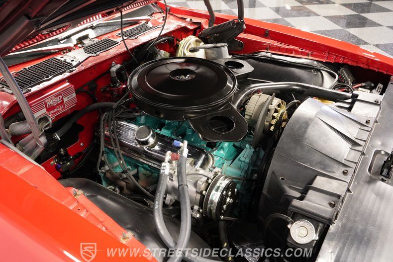 HIGHLIGHTS: 400-CUBIC-INCH V8 HOLLEY SNIPER ELECTRONIC FUEL INJECTION 4-SPEED MUNCIE MANUAL TRANSMISSION LONG TUBE HEADERS AND DUAL EXHAUST MSD IGNITION POWER STEERING 4-WHEEL POWER DISC BRAKE WITH WILWOOD ROTORS AND MASTER CYLINDER STRIKING BRIGHT RED EXTERIOR 17" AMERICAN RACING WHEELS VIBRANT RED VINYL UPHOLSTERY BUCKET SEATS CENTER CONSOLE AIR CONDITIONING AM/FM STEREO WITH AN AUXILIARY PORT AND BLUETOOTH CONNECTIVITY