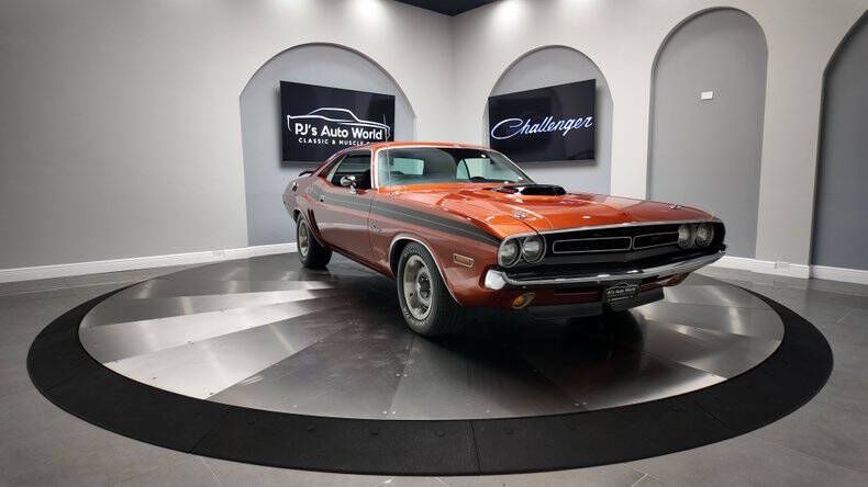 PJ's Auto World is pleased to offer this 1971 Dodge Challenger for Sale. 440 Six Pack V8 engine, highly detailed engine bay, three 2-barrel Holley Carburetors, electronic ignition, dual exhaust with crossover pipe and quad tips, 727 automatic transmission, Slapstick Shifter, 8 3/4 rear end with 3.55 gears, rear coil over shocks, 15 Rallye Wheels with BF Goodrich white letter radial tires, power steering, front power disc brakes, stunning Inferno Orange metallic with black stripe package, Shaker Hood with pins, rear Go Wing spoiler, dual chrome sport mirrors with driver's remote mirror, flip top fuel cap, Legendary black leather high back bucket seat interior, Rallye dash with tachometer, Tuff steering wheel, embroidered floor mats, center console with floor shifter, JVC AM/FM/CD radio. Don't miss your chance to make this one-of-a-kind 1971 E-Body Mopar yours today! Call us for all of the details. With over 45 years of dedicated service to the Collector Car Community, our team is eager to answer any questions you may have. Finance options available and worldwide shipping can easily be arranged. Interesting trade-ins will also be considered.