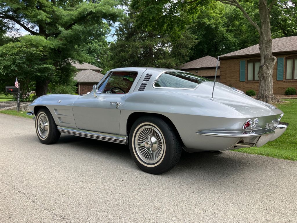 1964 Corvette Fastback Coupe. Flawless beautiful Satin Silver paint with excellent Bright Red interior both matching the trim tag. This Corvette has undergone a body off restoration. It still has the original matching number 327-300 horse engine and original Muncie 4-speed. Air Conditioning, AM/FM radio and Knock off wheels complete this elegant package. Excellent chrome and stainless. $82,500 Calls only as I do not text. 502-two28-0256 Louisville, KY