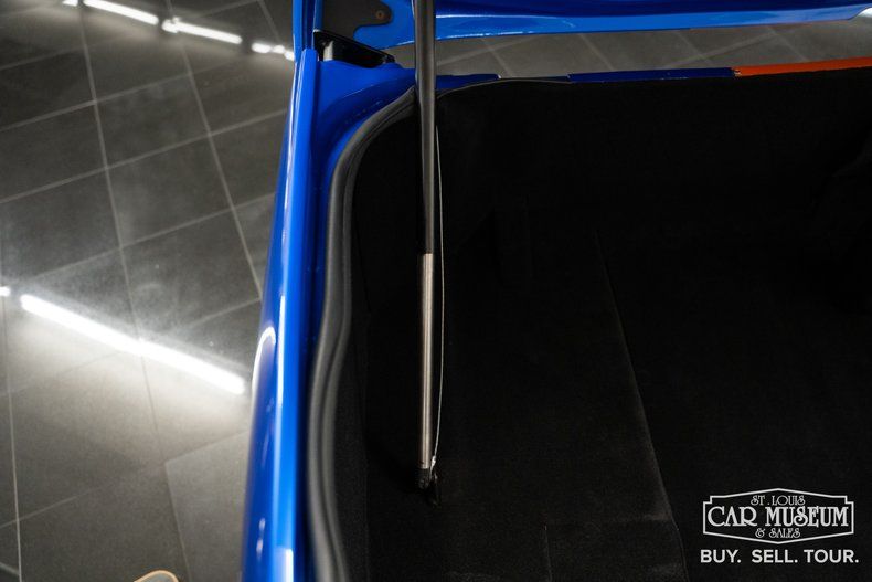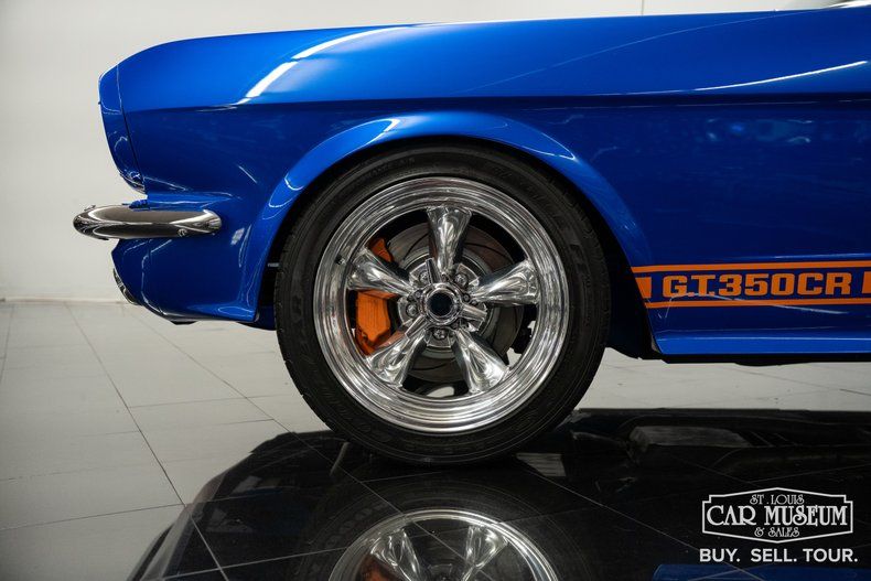 Restored in true rotisserie fashion, with every part needing to be brand new and available prospective customers during production, it would be built with great attention to detail. The factory unibody chassis reenforced underneath, all new suspension components with front & rear anti-sway bars, new SSBC power 4-wheel disc brakes, power rack and pinion steering, crate Ford Racing engine, Ford AOD automatic transmission with TCI Outlaw rachet shifter, 8" Currie axle with limited-slip gearing, Old Air Products air conditioning, BeCool Inc radiator with GMB aluminum water pump & electric fan, Ring Brothers hood hinges, all billet aluminum body hardware, and so much more! The paint work was completed in a professional multi-layer application in TruBlu by House of Kolor with their Tangelo Orange adding triple Lemans-inspired stripes, all buried under several layers of clearcoat for a spectacularly smooth finish! On the ground are Goodyear Eagle F1 tires measuring 235/45R17 on traditional American Racing TorqueThrust II wheels!