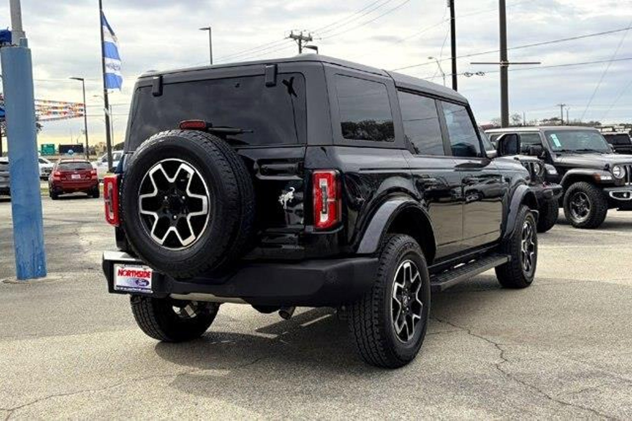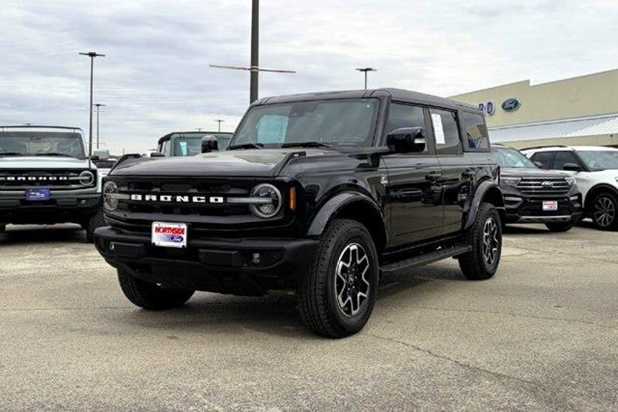 10 Speakers w/Subwoofer, 12 LCD Capacitive Touchscreen w/Swipe Capability, 18 Bright Machined Aluminum Wheels, 360-Degree Camera, ABS brakes, Adaptive Cruise Control, Additional Sound Deadening, AM/FM radio: SiriusXM with 360L, Automatic temperature control, Carbonized Gray Molded-In-Color Hard Top, Connected Built-In Navigation, Dual front side impact airbags, Emergency communication system: 911 Assist, Equipment Group 314A Lux Package, Evasive Steering Assist, Exterior Parking Camera Rear, Front dual zone A/C, Front Parking Sensors, Front Row Top Panels Storage Bag, Fully automatic headlights, Hard Top Sound Deadening Headliner, Heated front seats, Heated Steering Wheel, Illuminated entry, Information on Demand Panel, Integrated roll-over protection, Navigation system: Connected Navigation, Overhead airbag, Radio: B&O Sound System by Bang & Olufsen, Rear-Window Defroster & Washer, Security system, Sideview Mirrors, SiriusXM Radio w/360L, SYNC 4, Traction control, Universal Garage Door Opener, Wireless Charging Pad.2023 Ford Bronco Shadow Black Outer Banks 4WD10-Speed Automatic2.3L EcoBoost I-4This vehicle is located at Northside Ford. We're centrally located in the heart of San Antonio off Hwy 281 and Nakoma, just north of the airport.Recent Arrival!*Price does not include Northside Protection Package. Please see dealer for full details.