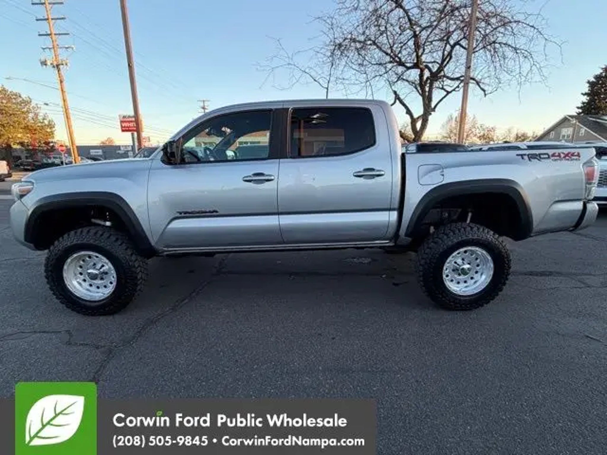 Our bold Accident Free 2021 Toyota Tacoma TRD Off-Road Double Cab 4X4 is ready to set off for your next adventure in Silver Sky Metallic! Powered by a 3.5 Liter V6 providing 278hp matched to a 6 Speed Automatic transmission for robust performance. This Four Wheel Drive truck also helps you tame harsh conditions with a terrain-management system, crawl control, and an electronically locking rear differential, and it achieves nearly 22mpg on the highway. Conquer your day and grab attention in our Tacoma, which features muscular black fenders, chrome bumpers, a distinctive grille, heated power mirrors, and alloy wheels. You can stay comfortable in our TRD Off-Road cabin even if you don't stay on the road, thanks to supportive fabric seats, 10-way power for the driver, a leather-wrapped steering wheel, air conditioning, pushbutton ignition, keyless access, and a power sliding rear window. The power of technology awaits with an 8-inch touchscreen, Android Auto®/Apple CarPlay®, WiFi/Amazon Alexa compatibility, Bluetooth®, and wireless charging. For a trail-friendly soundtrack, turn on the six-speaker audio system. Toyota Safety Sense systems promote peace of mind with a backup camera, automatic braking, adaptive cruise control, lane-departure warning, hill-start assistance, and more. Our Tacoma TRD Off-Road is here to meet your demands for a fun-to-drive truck! Save this Page and Call for Availability. We Know You Will Enjoy Your Test Drive Towards Ownership! Corwin Ford Nampa! Friendly service and aggressive pricing is why we are your new and pre-owned vehicle dealer serving, Nampa, Boise, Meridian, Caldwell, Kuna, Eagle, Emmett, Idaho City, Wilder, New Plymouth, Star, Middleton, Weiser, Payette, Horseshoe Bend, Mountain Home, Idaho, and surrounding states.