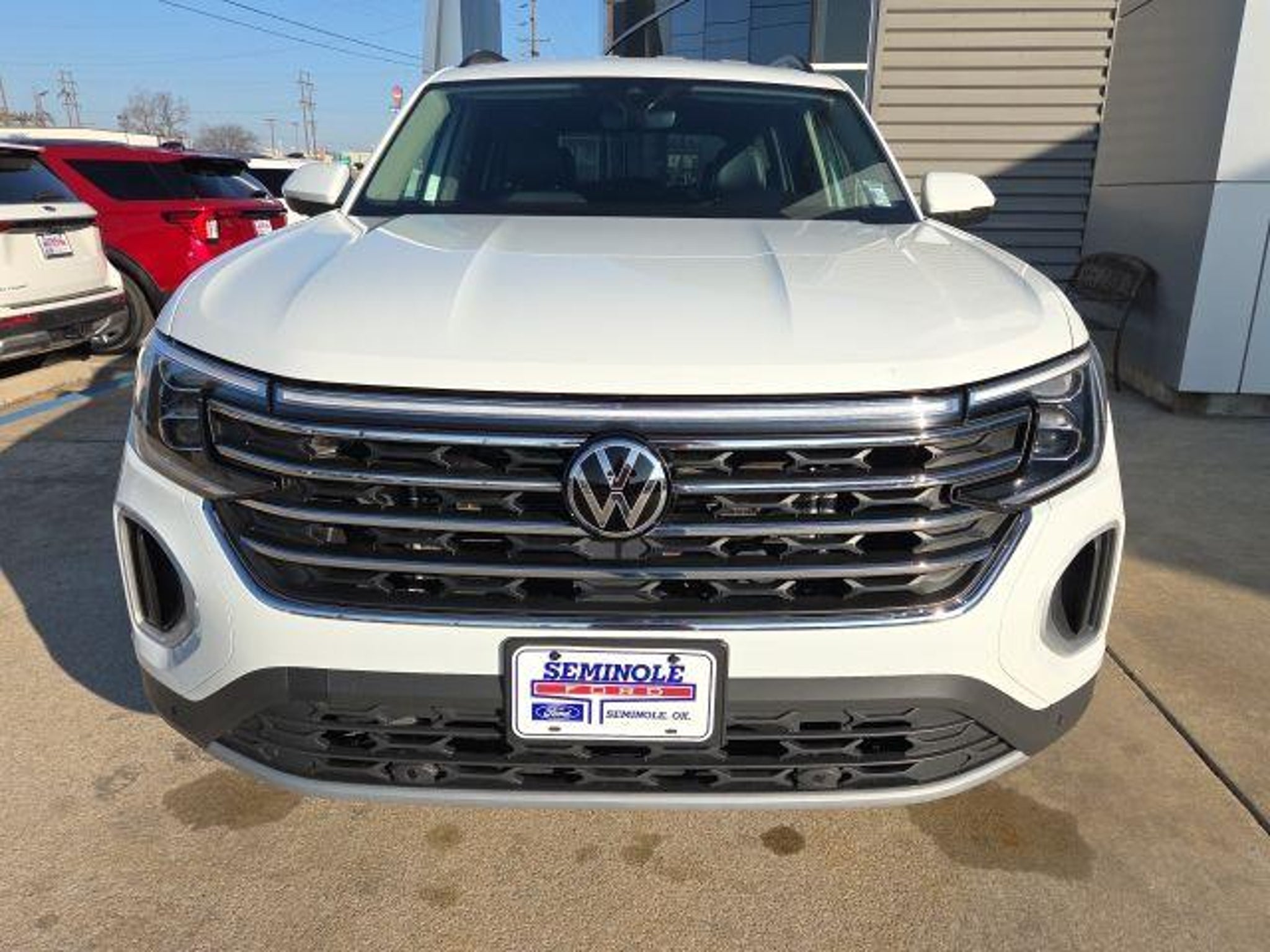2025 Volkswagen Atlas 2.0T SE w/Technology ONE OWNER, CLEAN CARFAX, BLUETOOTH, REAR VIEW CAMERA, BLIND SPOT MONITOR, Backup Camera. 2.0L TSI FWD 20/26 City/Highway MPG 20 2-tone machined alloy wheels, 3rd row seats: split-bench, 4-Wheel Disc Brakes, 6 Speakers, ABS brakes, Air Conditioning, Alloy wheels, AM/FM radio: SiriusXM with 360L, Auto High-beam Headlights, Auto-dimming Rear-View mirror, Automatic temperature control, Brake assist, Bumpers: body-color, Compass, Delay-off headlights, Driver door bin, Driver vanity mirror, Dual front impact airbags, Dual front side impact airbags, Electronic Stability Control, Emergency communication system: VW Car-Net Safe & Secure 5-year, Exterior Parking Camera Rear, Four wheel independent suspension, four-wheel independent suspension, Front anti-roll bar, Front Bucket Seats, Front Center Armrest, Front dual zone A/C, Front fog lights, Front reading lights, Fully automatic headlights, heated and Actively ventilated front bucket seats, Heated door mirrors, Heated front seats, Heated steering wheel, Illuminated entry, Low tire pressure warning, MIB3 composition media radio, Occupant sensing airbag, Outside temperature display, Overhead airbag, Overhead console, Panic alarm, Passenger door bin, Passenger vanity mirror, perforated V-Tex leatherette seating surfaces, Power door mirrors, Power driver seat, Power Liftgate, Power steering, Power windows, Radio data system, Rain sensing wipers, Rear air conditioning, Rear anti-roll bar, Rear reading lights, Rear seat center armrest, Rear window defroster, Rear window wiper, Remote keyless entry, Security system, Speed control, Speed-sensing steering, Split folding rear seat, Spoiler, Steering wheel mounted audio controls, Tachometer, Telescoping steering wheel, Tilt steering wheel, Traction control, Trip computer, Turn signal indicator mirrors, Variably intermittent wipers, and Ventilated front seats. IF WE DON'T SERVE YOU, WE DON'T DESERVE YOU! Seminole Ford proudly serving the following communities Seminole, Shawnee, Prague, Tecumseh, Wewoka, Holdenville, Wetumka, Ada, Norman, Stroud, Okemah & Meeker.