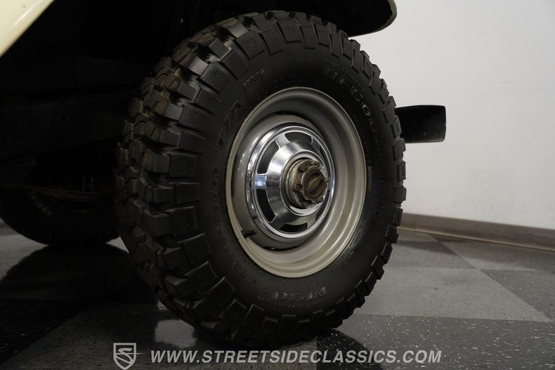 Highlights 4.2L Inline Six Engine Manual Transmission With 1-4+R Gears Weber 2-Barrel Carburetor Upgrade Dual-Battery Configuration Modern Hoses And Clamps Upgraded Radiator Chambered Muffler Exhaust BFGoodrich Mud-Terrain Tires (DOT 2021) Aftermarket Heavy-Duty Front Bumper Full Repaint, Straight Body New Vinyl Bucket Seats Factory-Style Suspension Clean Undercarriage, No Rust Believed Numbers Matching Engine Financing Available Vehicle Protection Plans Available Worldwide Shipping
