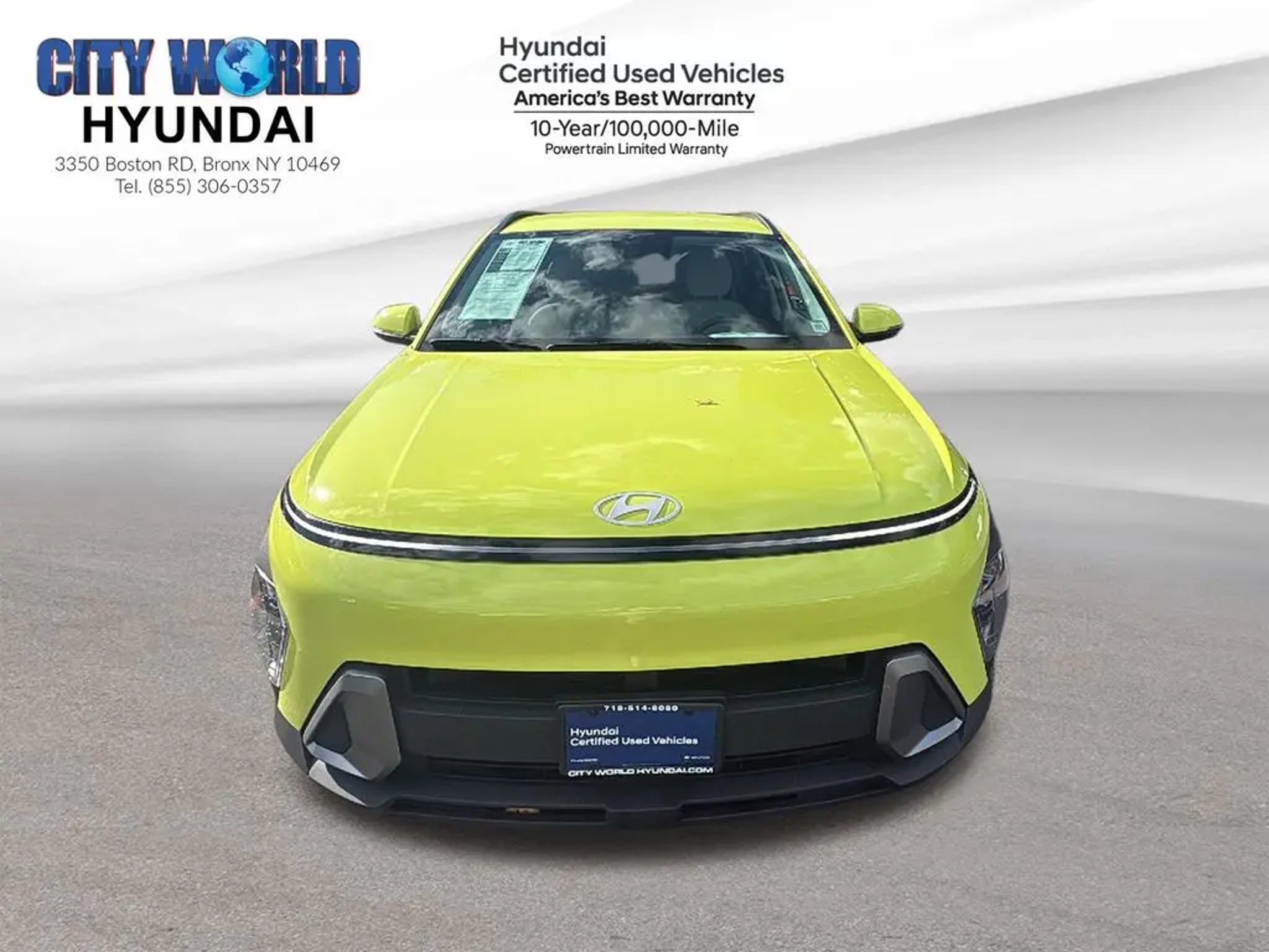 City World Hyundai is proud to present you with another True Market Priced Pre-Owned Vehicle. Priced to sell fast, $175 Doc FEE not included on price, in our location we have full transparent pricing policy, we dont charge any DEALER or PREP FEES. Simply Best price listed online Taxes based on your registration address and Motor Vehicle. This 2024 Hyundai Kona SEL Hyundai Certified Used Vehicles is loaded with the following Factory Options: Hyundai Certified Used Vehicles Certified Convenience Package (12.3 LCD Cluster, Auto-Dimming Rear-View Mirror, Column-Mounted Shift-By-Wire, FCA w/Junction Turning, Direct Oncoming, Heated Front Seats, Highway Driving Assist 1 (HDA 1), Hyundai Digital Key 2 Touch, LED Interior Lighting, Navigation-Based Smart Cruise Control (NSCC), Option Group 02, Paddle Shifters, Power Windows w/Front Auto-Down/Up, Radio: AM/FM/HD Radio/SiriusXM w/Navigation, Wi-Fi Hotspot, and Wireless Device Charging), Hyundai Certified Used Vehicles Certified, 4-Wheel Disc Brakes, 6 Speakers, 6.052 Axle Ratio, ABS brakes, Air Conditioning, Alloy wheels, AM/FM radio: SiriusXM, Apple CarPlay & Android Auto, Auto High-beam Headlights, Automatic temperature control, Brake assist, Bumpers: body-color, Cargo Tray, Carpeted Floor Mats, Cloth Seat Trim, Cross Rails, Delay-off headlights, Driver door bin, Driver vanity mirror, Dual front impact airbags, Dual front side impact airbags, Electronic Stability Control, Emergency communication system: Bluelink, Exterior Parking Camera Rear, First Aid Kit, Four wheel independent suspension, Front anti-roll bar, Front Bucket Seats, Front Center Armrest, Front dual zone A/C, Front reading lights, Fully automatic headlights, Heated door mirrors, Illuminated entry, Leather Shift Knob, Leather steering wheel, Low tire pressure warning, Occupant sensing airbag, Outside temperature display, Overhead airbag, Panic alarm, Passenger door bin, Passenger vanity mirror, Power door mirrors, Power driver seat, Power steering, Power windows, Radio: AM/FM/HD Radio/SiriusXM Audio System, Rear anti-roll bar, Rear seat center armrest, Rear window defroster, Rear window wiper, Remote keyless entry, Security system, Speed control, Speed-sensing steering, Split folding rear seat, Spoiler, Steering wheel mounted audio controls, Tachometer, Telescoping steering wheel, Tilt steering wheel, Traction control, Trip computer, Turn signal indicator mirrors, Variably intermittent wipers, and Wheels: 18 x 7.0J Glossy Black Alloy!! City World Hyundai in Bronx, NY treats the needs of each individual customer with paramount concern. We know that you have high expectations, and as a car dealer we enjoy the challenge of meeting and exceeding those standards each and every time. Allow us to demonstrate our commitment to excellence!