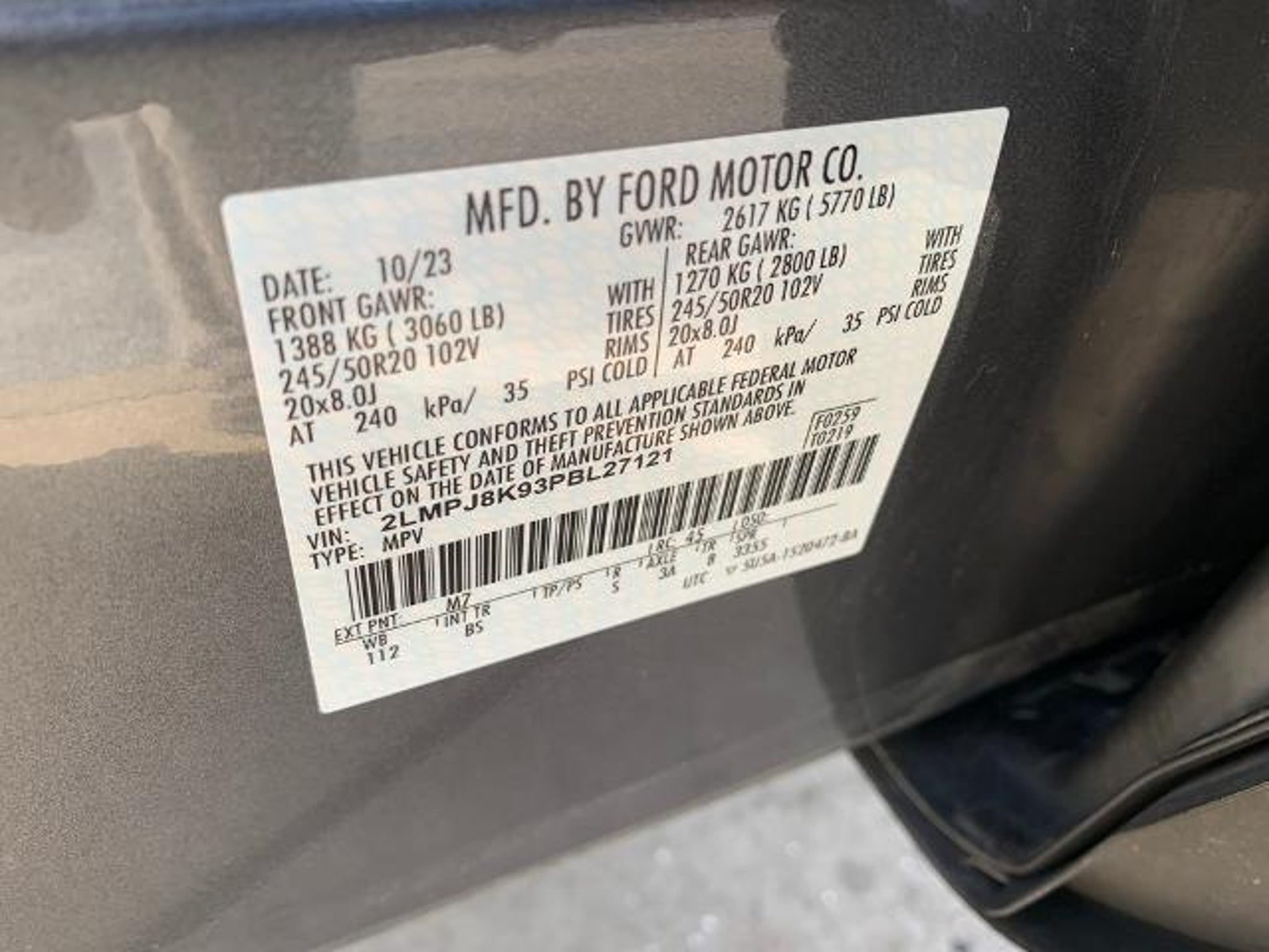 VIN 2LMPJ8K93PBL27121