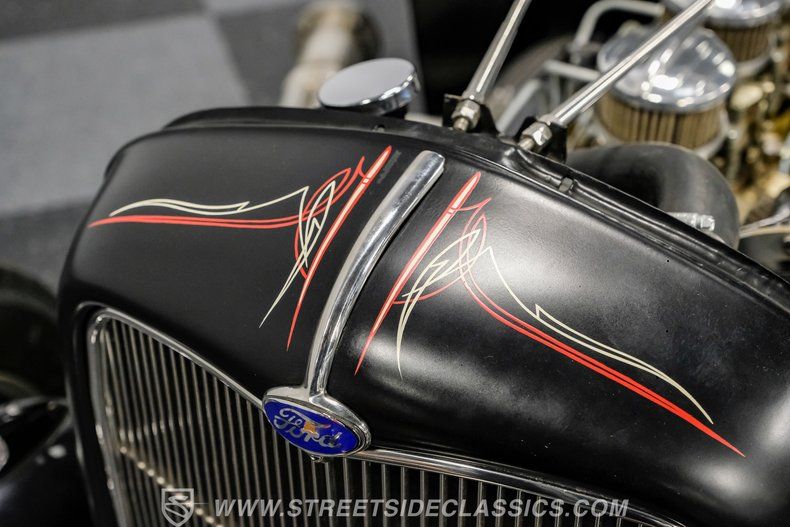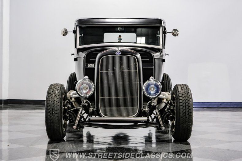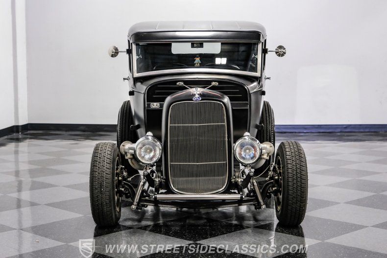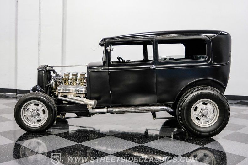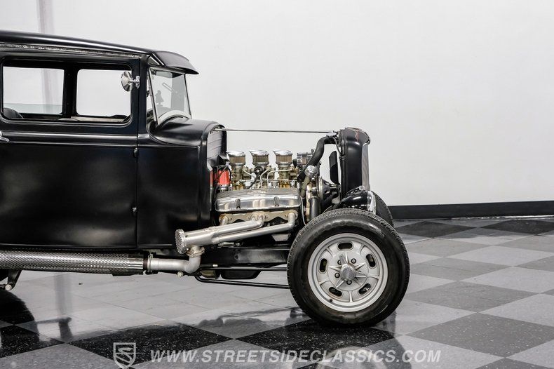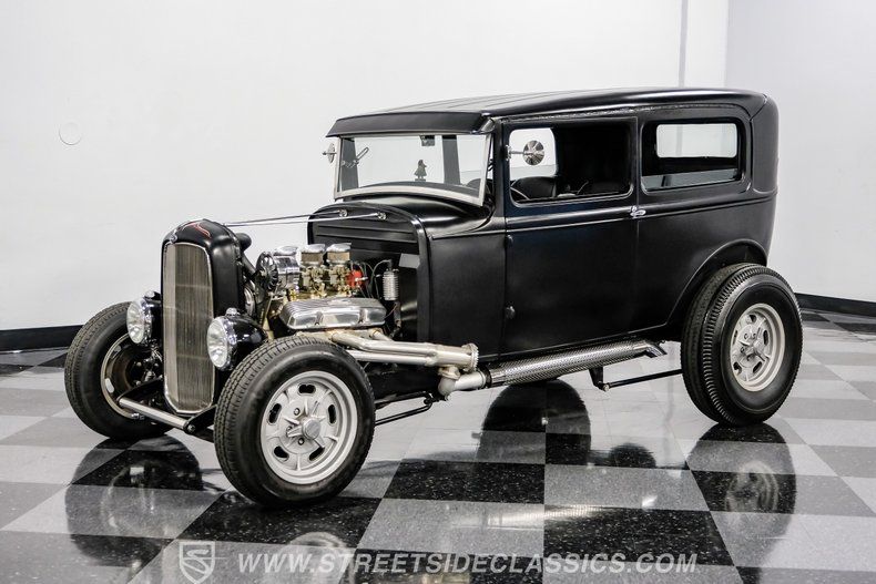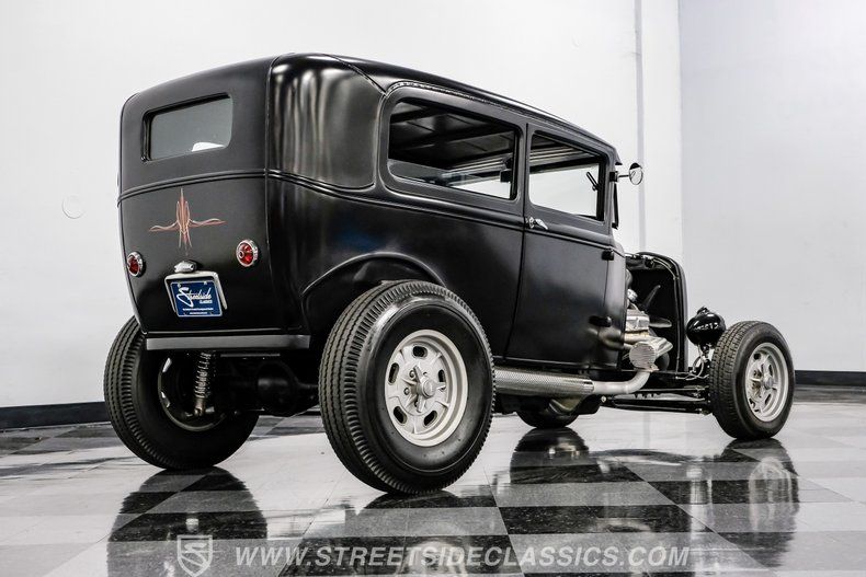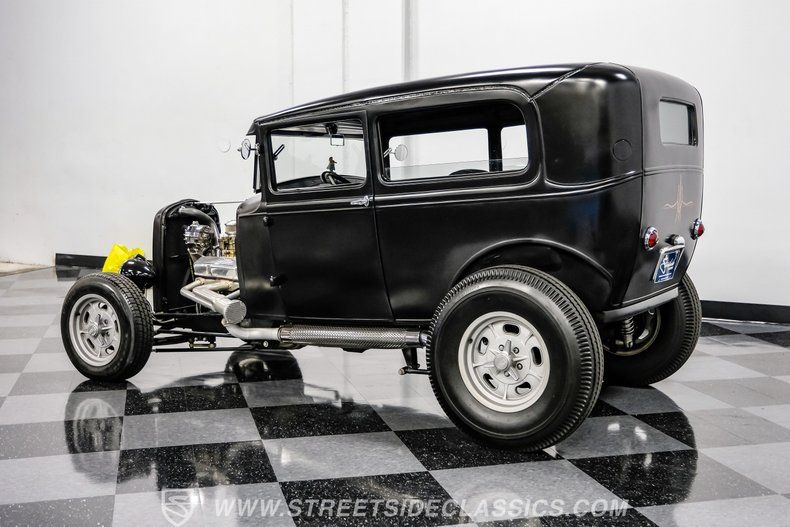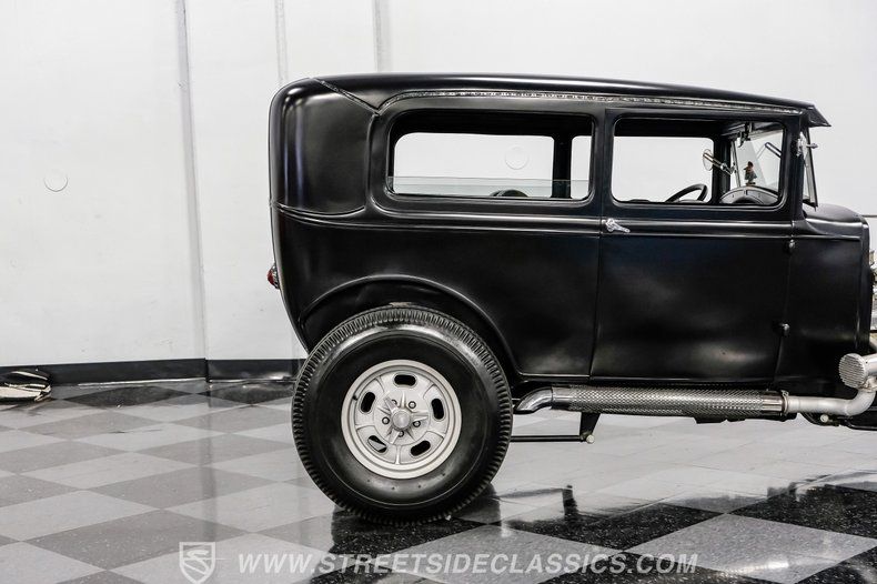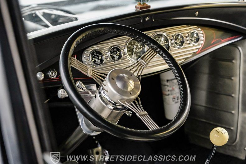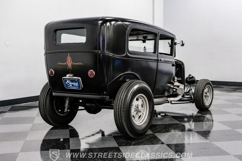 There's an undeniable allure to a true street rod-a machine that captures the raw essence of hot-rodding heritage and puts you behind the wheel of pure American craftsmanship. Picture yourself cruising down Main Street in a head-turning classic, a time capsule that fuses vintage style with modern muscle. This 1931 Ford Model A Tudor Sedan Streetrod features an all-steel body, a sleek Satin Black finish accented with red and white pinstriping, and a tilt-out windshield for refreshing airflow.