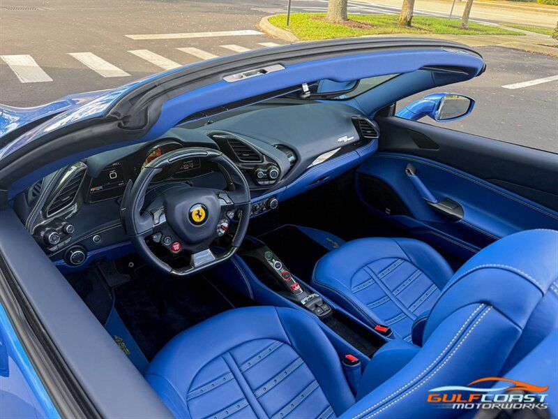 "2018 Ferrari 488 Spider. Blu Sophisticato Exterior with Azzurro Santorini & Blu Sterling Interior. Features Include: 661 Horsepower Twin Turbo 3.9L V8 Engine, Seven-Speed Dual Clutch Automatic Transmission, Magnetic Suspension Damping, 21"" Front & 22"" Rear MV Forged Wheels, Carbon Ceramic Brakes with Yellow Calipers, Active Titanium Sport Exhaust System, 'Scuderia Ferrari' Shields, Power Folding Convertible Hard Top, Projector Beam AFS Headlights, LED DRLs, LED Tail Lights, Front & Rear Parking Sensors, Front & Rear Parking Cameras, Power Folding Outside Mirrors, Keyless Access & Start, Ferrari Door Sill Plates, Carbon Fiber Driver Zone + LEDs, Yellow Rev. Counter, Instrument Cluster with Two TFT Screens, Carbon Fiber Dash Inserts, Full Electric Daytona Seats, Cavallino Stitched on Headrests, Carbon Fiber Central Bridge, Pit Speed Control, Selectable Drive Modes, Dual Zone Automatic Climate Control, Smartphone Integration, JBL HiFi Sound System, Bluetooth, Navigation, HomeLink. Priced at only $309,995.00. Financing available. We ship worldwide. We pay top dollar for lightly used sports cars! Call or text our Product Specialists today at 239-522-2262 or email us at sales@gcmworks.com. Fees and Taxes: $1199.00 Doc Fee on all Purchases. Out of state buyers are responsible for all state, county, city taxes and fees, as well as title/registration fees in the state that the vehicle will be registered. -- INSTALLED FEATURES: Air filtration, Front air conditioning: automatic climate control, Front air conditioning zones: dual, Airbag deactivation: passenger switch, Front airbags: dual, Side airbags: front / head protection chambers, Antenna type: diversity / element, Auxiliary audio input: Bluetooth / iPod/iPhone / jack / USB, Hard drive: 30GB, In-Dash CD: DVD audio / MP3 Playback / single disc, Premium brand: JBL, Radio: AM/FM / touch screen display / voice operated, Radio data system, Satellite radio: SiriusXM, Speed sensitive volume control, Subwoofer: 1, Total speakers: 12, Watts: 1280, ABS: 4-wheel, Electronic brakeforce distribution, Electronic parking brake, Front brake type: carbon ceramic disc, Power brakes, Premium brakes: Brembo, Rear brake type: carbon ceramic disc, Center console trim: leather, Dash trim: leather, Door sill trim: aluminum, Door trim: leather, Floor mat material: carpet, Floor material: carpet, Floor mats: front, Foot pedal trim: aluminum, Interior accents: aluminum, Steering wheel trim: alloy / leather, Cargo area light, Center console: front console with armrest and storage, Cruise control, Cupholders: front, Multi-function remote: keyless entry / panic alarm / trunk release, One-touch windows: 2, Power outlet(s): 12V front, Power steering: variable/speed-proportional, Power windows: lockout button, Push-button start, Reading lights: front, Rearview mirror: manual day/night, Steering wheel: tilt and telescopic, Steering wheel mounted controls: audio / paddle shifter / phone, Storage: door pockets, Tool kit, Vanity mirrors: passenger, Door handle color: body-color, Exhaust: dual tip, Exhaust tip color: stainless steel, Front bumper color: body-color, Grille color: black, Ground effects/lower spoilers, Mirror color: body-color, Rear bumper color: body-color, Rear spoiler: lip, Rear spoiler color: body-color, Window trim: black, Smartphone integration: Apple CarPlay, Clock, Compass, Customizable instrument cluster, Digital odometer, External temperature display, Fuel economy display: MPG / range, Gauge: tachometer, Instrument cluster screen size: 5 in. (dual), Multi-function display, Trip odometer, Warnings and reminders: coolant temperature warning / lamp failure / low battery / low fuel level / low oil pressure / low washer fluid / maintenance due, Daytime running lights: LED, Headlight cleaners, Headlights: auto delay off / auto on/off / HID/Xenon / self-leveling, Rear fog lights, Taillights: LED, Side mirror adjustments: power / power folding, Side mirrors: heated, Auto start/stop, Battery: maintenance-free, Battery saver, Drive mode selector, Limited slip differential: rear, Mid-mounted engine, Convertible rear window: glass, Convertible roof: power retractable hard top, Convertible roof wind blocker, Automatic hazard warning lights, Crumple zones: front / rear, Emergency interior trunk release, Impact sensor: fuel cut-off, Parking sensors: rear, Rollover protection system, Emergency locking retractors: front, Front seatbelts: 3-point, Seatbelt force limiters: front, Seatbelt pretensioners: front, Seatbelt warning sensor: front, Driver seat manual adjustments: 4 / reclining, Front headrests: 2 / integrated, Front seat type: sport bucket, Passenger seat manual adjustments: 4 / reclining, Upholstery: premium leather, Anti-theft system: alarm / interior motion sensor / perimeter alarm / vehicle immobilizer, Power door locks: auto-locking, Stability control, Traction control, Active suspension, Driver adjustable suspension: ride control, Front shock type: monotube, Front spring type: coil, Front stabilizer bar, Front struts, Front suspension classification: independent, Front suspension type: double wishbone, Rear shock type: monotube, Rear spring type: coil, Rear stabilizer bar, Rear suspension classification: independent, Rear suspension type: multi-link, Suspension control: magnetic, Tuned suspension: sport, Electronic messaging assistance: voice operated / with read function, Navigation system: hard drive / touch screen display / voice operated, Wireless data link: Bluetooth, Spare tire kit: inflator kit / tire sealant, Tire Pressure Monitoring System, Wheels: aluminum alloy, Front wipers: rain sensing / variable intermittent, Power windows: safety reverse, Tinted glass, Window defogger: rear"