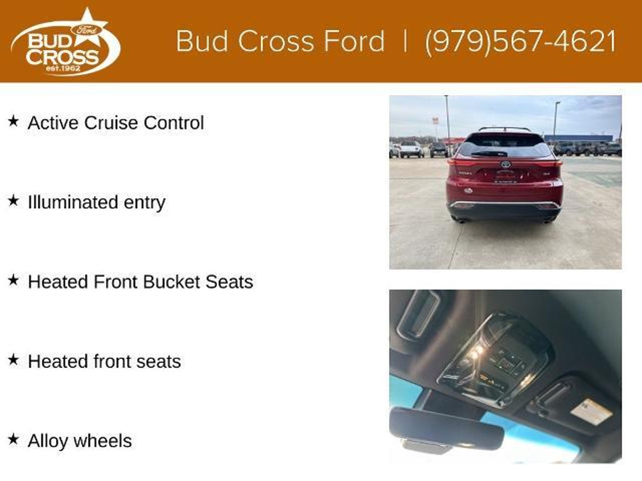 This stunning 2021 Ford Expedition Limited is the perfect blend of power, style, and versatility. Under the hood, you'll find a potent EcoBoost 3.5L V6 engine that delivers an impressive 375 horsepower and 470 lb-ft of torque, mated to a smooth-shifting 10-speed automatic transmission. With rear-wheel drive and a best-in-class towing capacity of up to 9,300 lbs, this Expedition is ready to take on any adventure, from hauling your boat to towing your RV. Family owned and operated in Caldwell, TX, Bud Cross Ford is proud to serve you and your family with a stress-free buying experience and hometown service you can count on. We also offer FREE local delivery to many surrounding areas including Bryan/College Station (77845, 77840, 77802), Caldwell (77836), Deanville (77852), Snook (77879), Chriesman (77838), Rockdale (76567), Milano (76556), Gause (77857) and more! â Apple CarPlay/Android Auto â Power Liftgate â Exterior Parking Camera Rear â Emergency communication system: Safety Connect (1-year trial) â Leather Shift Knob â Leather steering wheel Powered by a robust 2.5L 4-Cylinder DOHC 16V engine paired with a Continuously Variable (ECVT) transmission, the Venza delivers an impressive 40 city/37 highway MPG, making it an exceptional choice for those who value efficiency without sacrificing driving dynamics. The standard All-Wheel Drive system ensures confident handling in all weather conditions, providing you with the peace of mind you deserve. The Venza XLE is packed with a wealth of premium features that elevate the driving experience. Enjoy the convenience of a Power Liftgate, the added security of an Exterior Parking Camera Rear, and the added visibility of Auto High-beam Headlights. Stay connected with the seamless integration of Apple CarPlay and Android Auto, and indulge in the refined touches of Leather Shift Knob and Leather steering wheel. Safety is also a top priority in the Venza, with an impressive array of advanced driver-assistance technologies, including an Emergency communication system with a 1-year trial. You and your loved ones can travel with confidence, knowing you're protected by the latest safety innovations. Whether you're commuting, running errands, or embarking on a weekend getaway, this 2024 Toyota Venza XLE is the perfect companion. Experience the perfect blend of style, technology, and performance that this exceptional vehicle has to offer. Our team is committed to making your vehicle purchase easy, transparent, and pressure-free, and we treat every customer