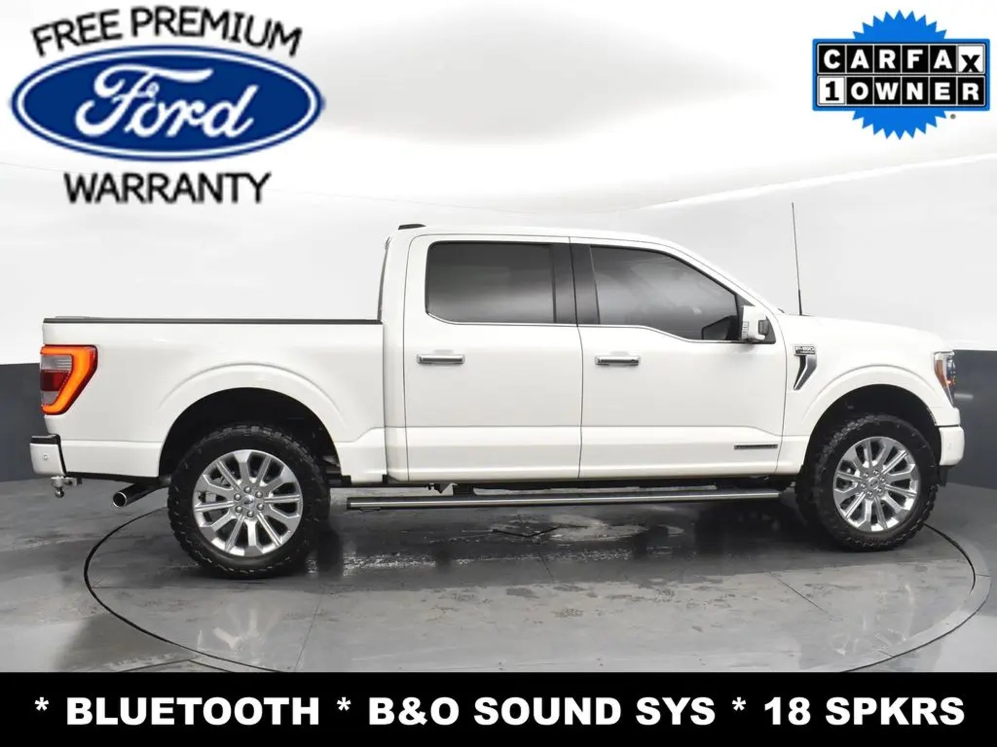 **FREE FORD FACTORY PREMIUM WARRANTY (12 MNTHS OR 12K MILES)**, **ONE OWNER**, **360 CAMERA**, **ADAPTIVE CRUISE CONTROL**, **BLUECRUISE**, **NAVIGATION/ CONNECTED NAV**, **PANORAMIC ROOF**, **BLIS (BLIND SPOT INFO SYSTEM)**, **22' WHEELS**, **DUAL ZONE TEMP CONTROL**, **HEATED & COOLED LEATHER SEATS**, **HEATED REAR SEATS**, **DUAL POWER SEATS**, **BANG & OLUFSEN SOUND SYSTEM**, **SYNC4**, **APPLINK**, **FORDPASS CONNECT 4 G WIFI MODE**, **SPRAY-IN BEDLINER**, INTEGRATED TRLR BRAKE CONTROLLER**, **BACKUP CAMERA**, FWD & REV SENSING**, **INTELLIGENT ACCESS w. PUSH BUTTON START, **INTERIOR WORK SURFACE**, **TRITON PROTECT CAR CARE SYSTEM**, **TRITON PROTECT SILENT SECURITY THEFT DETERRENT SYSTEM**, **FULLY INSPECTED BY CERTIFIED TECHNICIANS**, 18 Speakers, Active Park Assist 2.0 Removal, Adaptive suspension, Adjustable pedals, AM/FM radio: SiriusXM with 360L, Auto High-beam Headlights, Delay-off headlights, Emergency communication system: SYNC 4 911 Assist, Equipment Group 900A Standard, Front fog lights, Fully automatic headlights, Inclination/Intrusion Sensor Removal, Low Tire Pressure Warning, Memory seat, Navigation system: Connected Navigation, Pedal memory, Radio: B&O Unleashed Sound System by Bang & Olufsen, Rain sensing wipers, Speed Control, Telescoping Steering Wheel, Tilt Steering Wheel, Variably intermittent wipers.