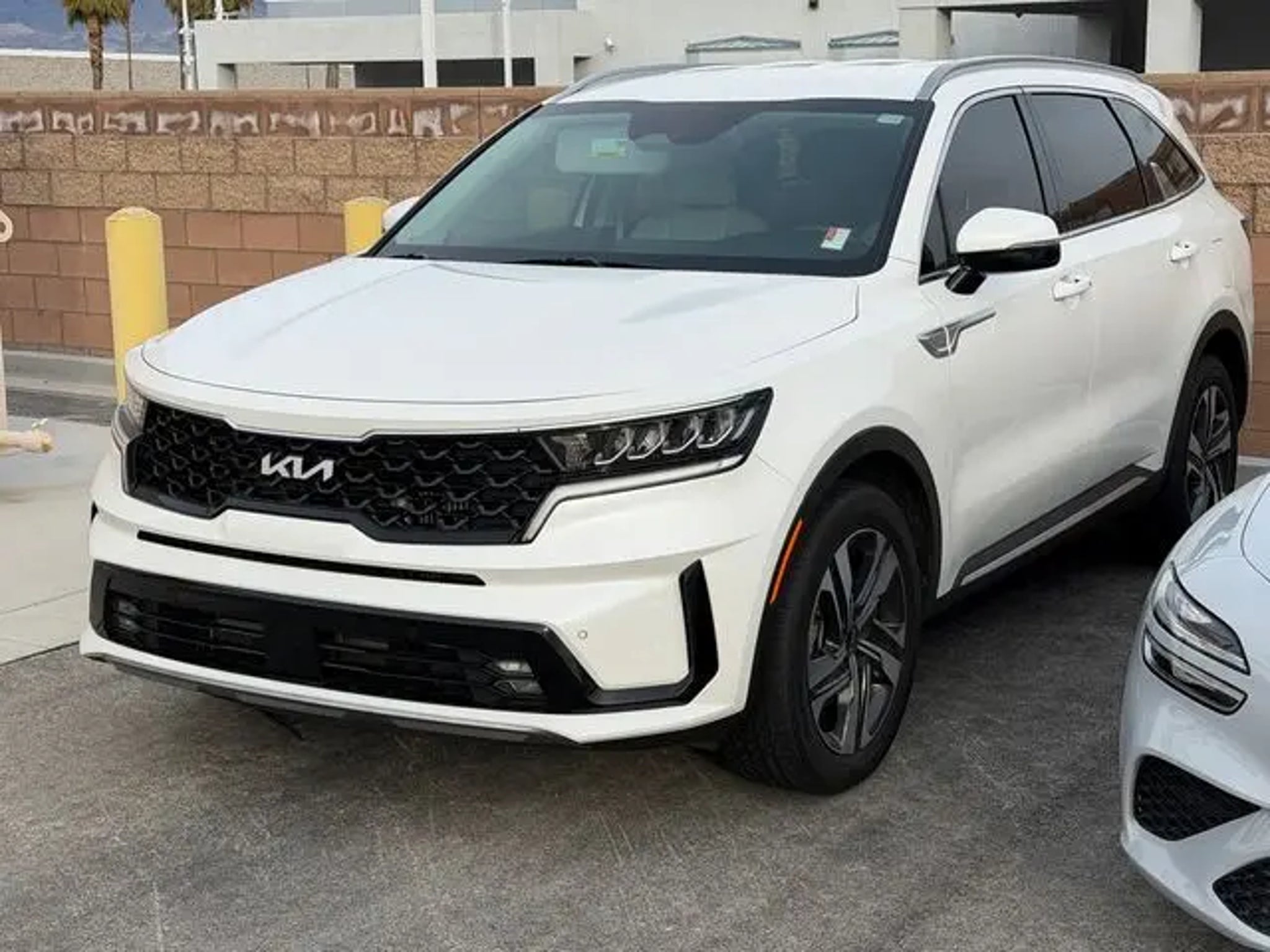 36/33 City/Highway MPG Snow White Pearl 2023 Kia Sorento Hybrid EX AWD 6-Speed Automatic 1.6L I4 DGI Hybrid Turbocharged DOHC 16V LEV3-ULEV70 1.6L I4 DGI Hybrid Turbocharged DOHC 16V LEV3-ULEV70. If you don't drive here, you can't save here! Price may not include recon fee. 1.6L I4 DGI Hybrid Turbocharged DOHC 16V LEV3-ULEV70, 3rd row seats: split-bench, 4-Wheel Disc Brakes, 6 Speakers, ABS brakes, Air Conditioning, Alloy wheels, AM/FM radio: SiriusXM, Apple CarPlay & Android Auto, Auto High-beam Headlights, Automatic temperature control, Axle Ratio: 3.510, Brake assist, Bumpers: body-color, Carpet Floor Mats, Delay-off headlights, Driver door bin, Driver vanity mirror, Dual front impact airbags, Dual front side impact airbags, Electronic Stability Control, Emergency communication system, Exterior Parking Camera Rear, Four wheel independent suspension, Front anti-roll bar, Front Bucket Seats, Front Center Armrest, Front dual zone A/C, Front fog lights, Front reading lights, Fully automatic headlights, Heated door mirrors, Heated Front Bucket Seats, Heated front seats, Illuminated entry, Knee airbag, Leather steering wheel, Low tire pressure warning, Navigation System, Occupant sensing airbag, Outside temperature display, Overhead airbag, Overhead console, Panic alarm, Passenger door bin, Passenger vanity mirror, Power door mirrors, Power driver seat, Power Liftgate, Power passenger seat, Power steering, Power windows, Radio data system, Radio: AM/FM/HD Radio/SiriusXM Audio System, Rear air conditioning, Rear anti-roll bar, Rear reading lights, Rear window defroster, Rear window wiper, Remote keyless entry, Roof rack: rails only, Security system, Smart Key w/ Push Button and Remote Start, Speed control, Speed-sensing steering, Split folding rear seat, Spoiler, Steering wheel mounted audio controls, SynTex Artificial Leather Seat Trim, Tachometer, Telescoping steering wheel, Tilt steering wheel, Traction control, Trip computer, Turn signal indicator mirrors, Variably intermittent wipers, and Wheels: 19 Machine-Finished Alloy.