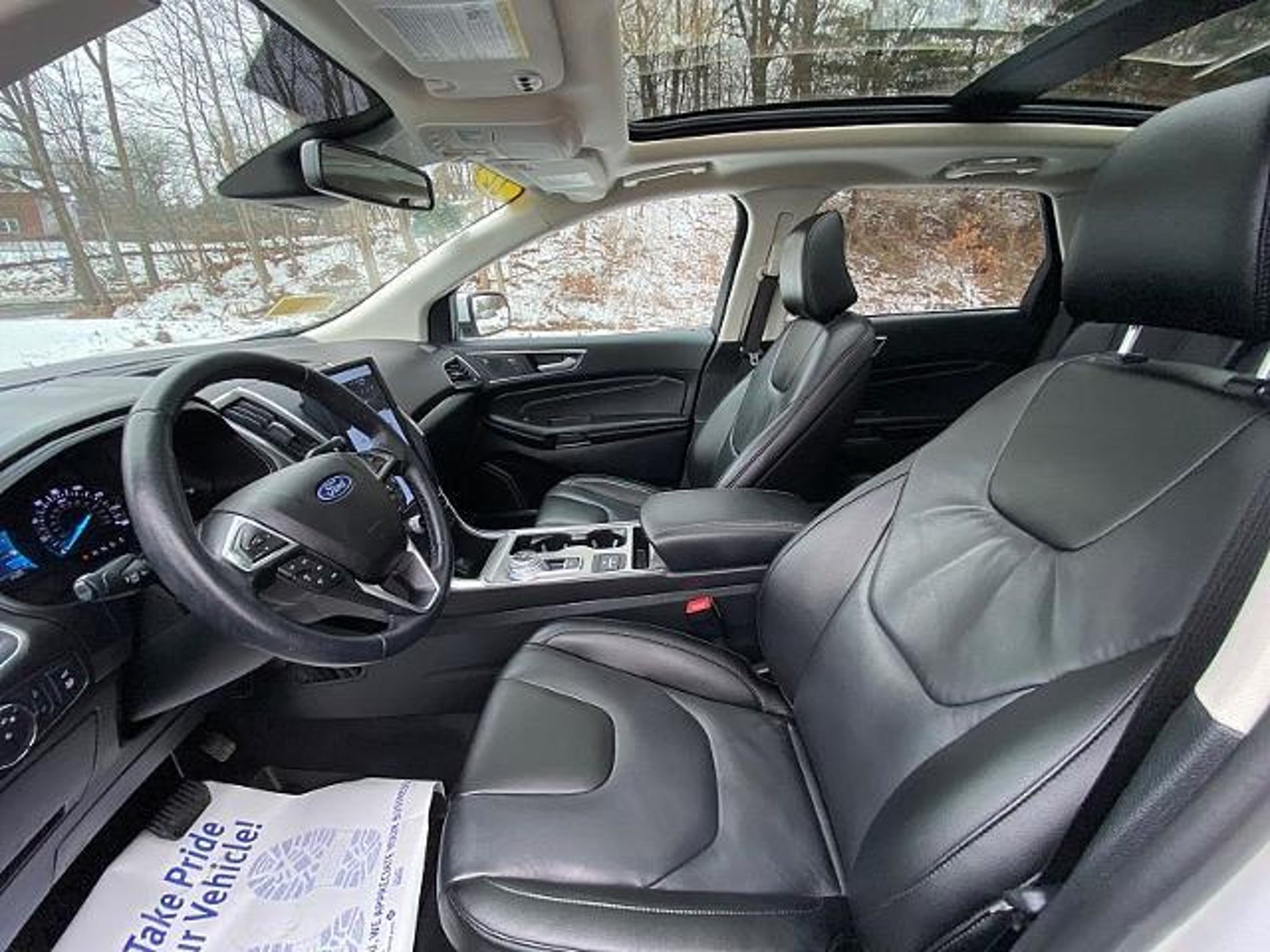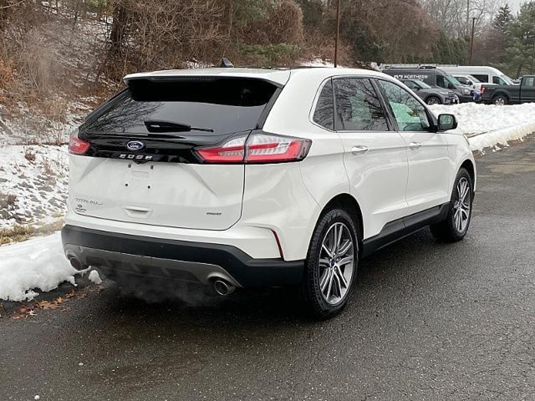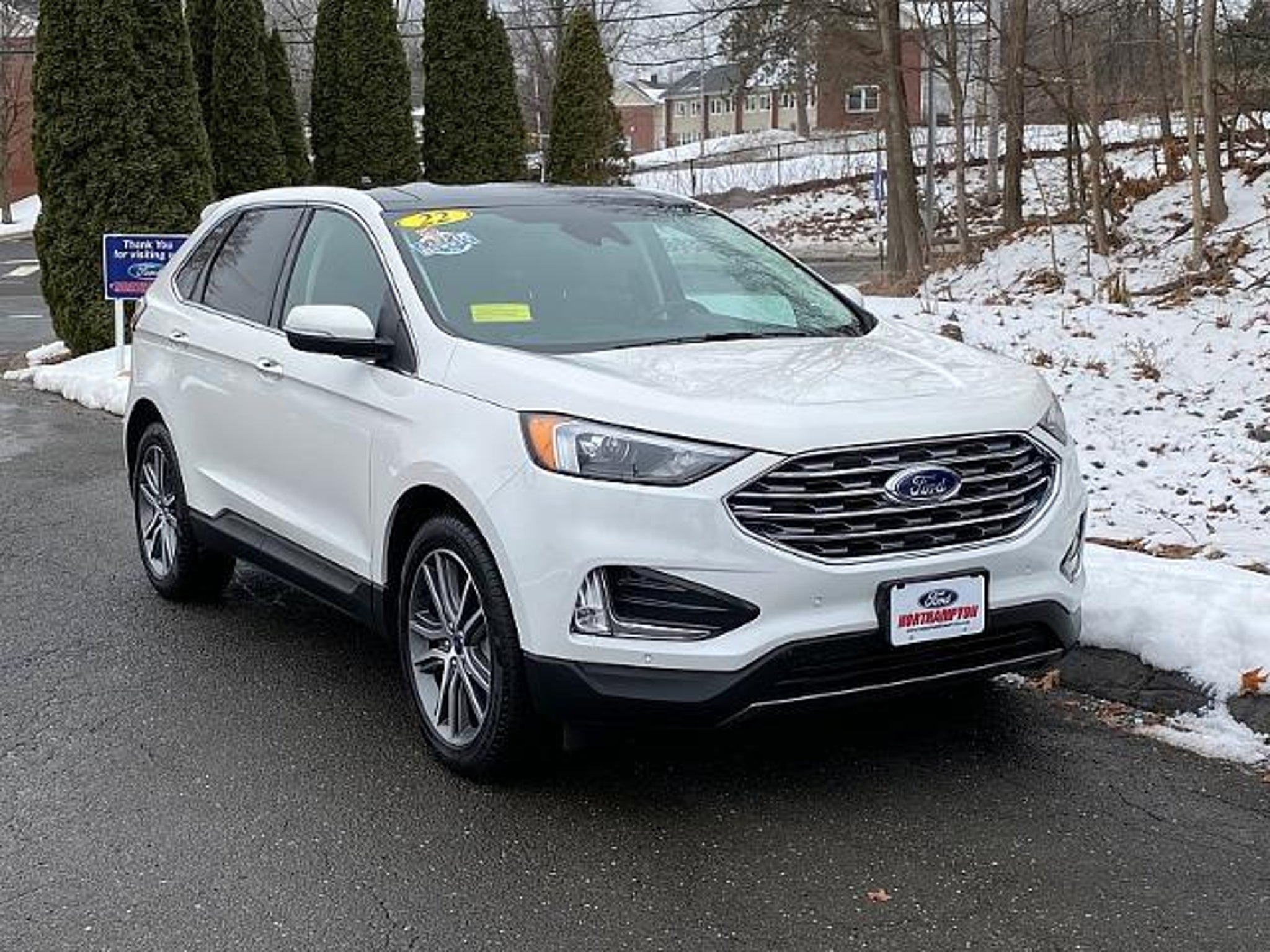 2022 FORD EDGE TITANIUM AWD. 2.0L ECOBOOST ENGINE W/ 8-SPD AUTOMATIC TRANSMISSION. STAR WHITE EXTERIOR W/ PREMIUM BLACK LEATHER INTERIOR. ALL-WHEEL DRIVE. CARFAX 1-OWNER VEHICLE.CLEAN CARFAX HISTORY REPORT. 20 BRIGHT MACHINED ALUMINUM WHEEL. POWER PANORAMIC VISTA MOONROOF. POWER WINDOWS AND DOOR LOCKS. DUAL POWER HEATED MIRRORS W/ LED APPROACH LAMPS AND MEMORY. STAINLESS STEEL EXHAUST TIPS. AUTOMATIC LED HEADLAMPS W/ SIGNATURE LIGHTING. LED FOG LAMPS AND TAILLAMPS. HANDS-FREE POWER LIFTGATE. PRIVACY GLASS. RAIN SENSING WIPERS. 110V / 150W AC POWER OUTLET. 60/40 EASY FOLD REAR BENCH SEAT. AMBIENT LIGHTING. DUAL ILLUMINATED VANITY MIRRORS. DUAL-ZONE ELECTRONIC AUTO CLIMATE CONTROL. HEATED LEATHER WRAPPED STEERING WHEEL W/ CRUISE CONTROL AND AUDIO CONTROLS. HEATED 10-WAY POWER DRIVER SEAT W/ MEMORY AND 6-WAY POWER PASSENGER SEAT. 12V POWERPOINTS. USB (A) AND (C) PORTS. PREMIUM B&O 12-SPEAKER SOUND SYSTEM. FORD CO-PILOT360 SYSTEM. FORDPASS CONNECT 4GWI-FI HOTSPOT TELEMATICS MODEM. FORDWARD SENSING SYSTEM. INTELLIGENT ACCESS W/ PUSH BUTTON START. REAR PARKING SENSORS. REAR VIEW CAMERA W/ WASHER. REMOTE START SYSTEM. SECURICODE KEYLESS ENTRY KEYPAD. SIRIUS SATELLITE RADIO. HANDS FREE VOICE ACTIVATED BLUETOOTH FORD SYNC4 SYSTEM W/ ENHANCED VOICE RECOGNIGTION AND 12 INFOTAINMENT TOUCHSCREEN. UNIVERSAL GARAGE DOOR OPENER. WIRELESS CHARGING PAD. LATCH CHILD SAFETY SYSTEM. 28MPG HWY RATED. FORD GOLD CERTIFIED PRE-OWNED VEHICLE WHICH INCLUDES 172-POINT SAFETY INSPECTION PERFORMED BY FORD TRAINED AND CERTIFIED TECHNICIANS. 12-MONTH / 12,000-MILE COMPREHENSIVE LIMITED WARRANTY COVERAGE. 7-YEAR / 100,000-MILE POWERTRAIN LIMITED WARRANTY COVERAGE WHICH INCLUDES COVERAGE UNTIL JANUARY 2030 OR 100,000 MIILES. 14-DAY / 1,000-MILE MONEY BACK GUARANTEE. 24-HOUR ROADSIDE ASSISTANCE. 22,000 FORDPASS REWARDS POINTS TO USE TOWARDS SCHEDULED MAINTENANCE VISITS OR OTHER REWARDS. CARFAX VEHICLE HISTORY REPORT. SIRIRUS XM SATELLITE COMPLIMENTARY 3-MONTH TRIAL. A FULL TANK OF FUEL, FRESH OIL AND FILTER, AND NEW WIPER BLADES. SERVICE AVAILABLE AT ANY FORD DEALER IN THE 50-STATES.