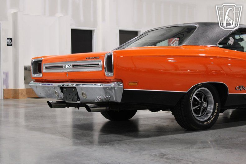In summary, the 1969 Plymouth GTX with its striking orange exterior, powerful V8 engine, and well-appointed features, represents a remarkable blend of performance and classic design. This vehicle is a testament to the golden era of American muscle cars, offering a driving experience that is both exhilarating and timeless.