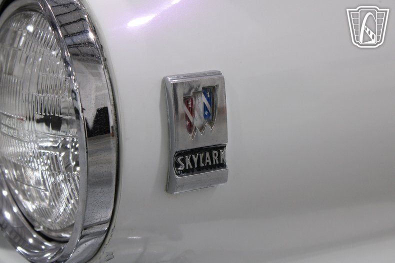 Functionality and comfort are exemplified with features such as power windows and an automatic convertible top and power driver's seat, which add a layer of convenience and modernity to this classic ride. The presence of an AM radio allows for nostalgic entertainment as you cruise down memory lane, while the radial tires ensure stability and traction. The Skylark's hub caps and striking white wall tires underscore its vintage appeal, making it a standout on any occasion.