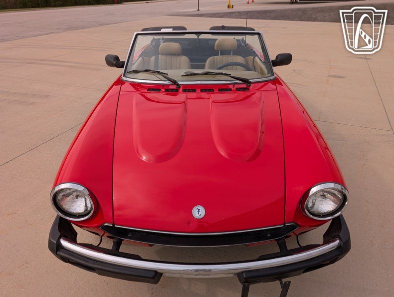 Gateway Classic Cars is proud to offer this timeless elegance of the 1983 Fiat 124 Spider Pininfarina Azzurra 2000, a classic roadster that embodies the blend of Italian design and spirited performance. This stunning vehicle features a striking red exterior that captures attention and exudes a sense of adventure. Complementing its vibrant exterior is a luxurious tan leather interior, offering a sophisticated and comfortable driving experience.