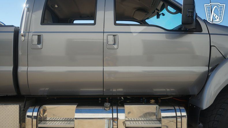 This Ford F-650 Super Crewzer comes equipped with a host of features designed to make every journey comfortable and convenient. Enjoy the comfort of air conditioning and the premium feel of a leather interior complete with lumbar support, ensuring both driver and passengers experience the utmost in comfort during long trips. The vehicle's aluminum wheels and custom wheels not only add to its aesthetic appeal but also contribute to a refined driving experience.