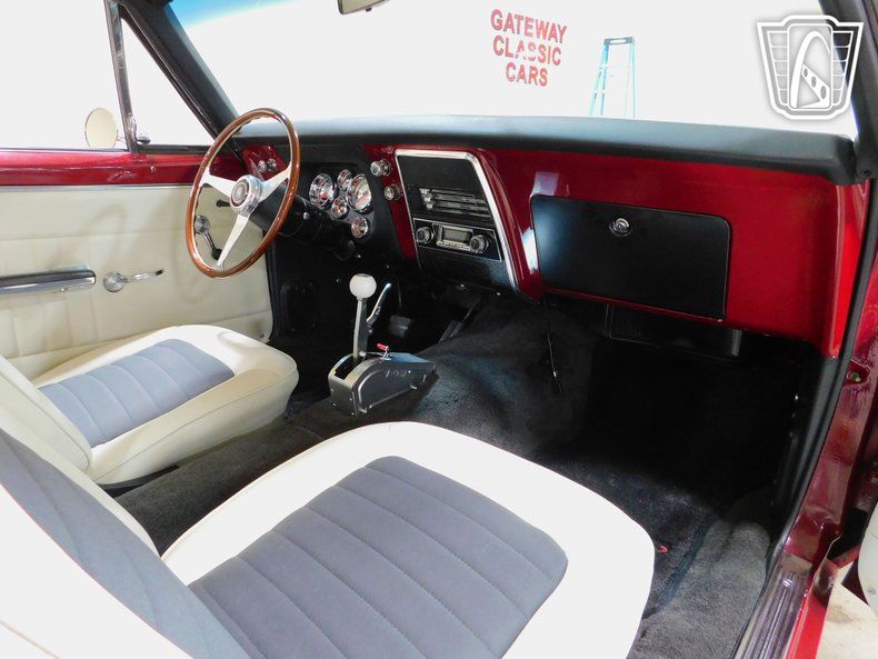 Gateway Classic Cars of Tulsa is proud to represent this slick 1967 Chevrolet Camaro, a vehicle that embodies the spirit of performance and style. This stunning Camaro boasts a striking dark red exterior that captures attention and admiration wherever it goes. The vibrant hue is complemented by a sophisticated cream leather and black cloth interior, offering a timeless and elegant contrast that enhances the overall aesthetic of this legendary automobile.