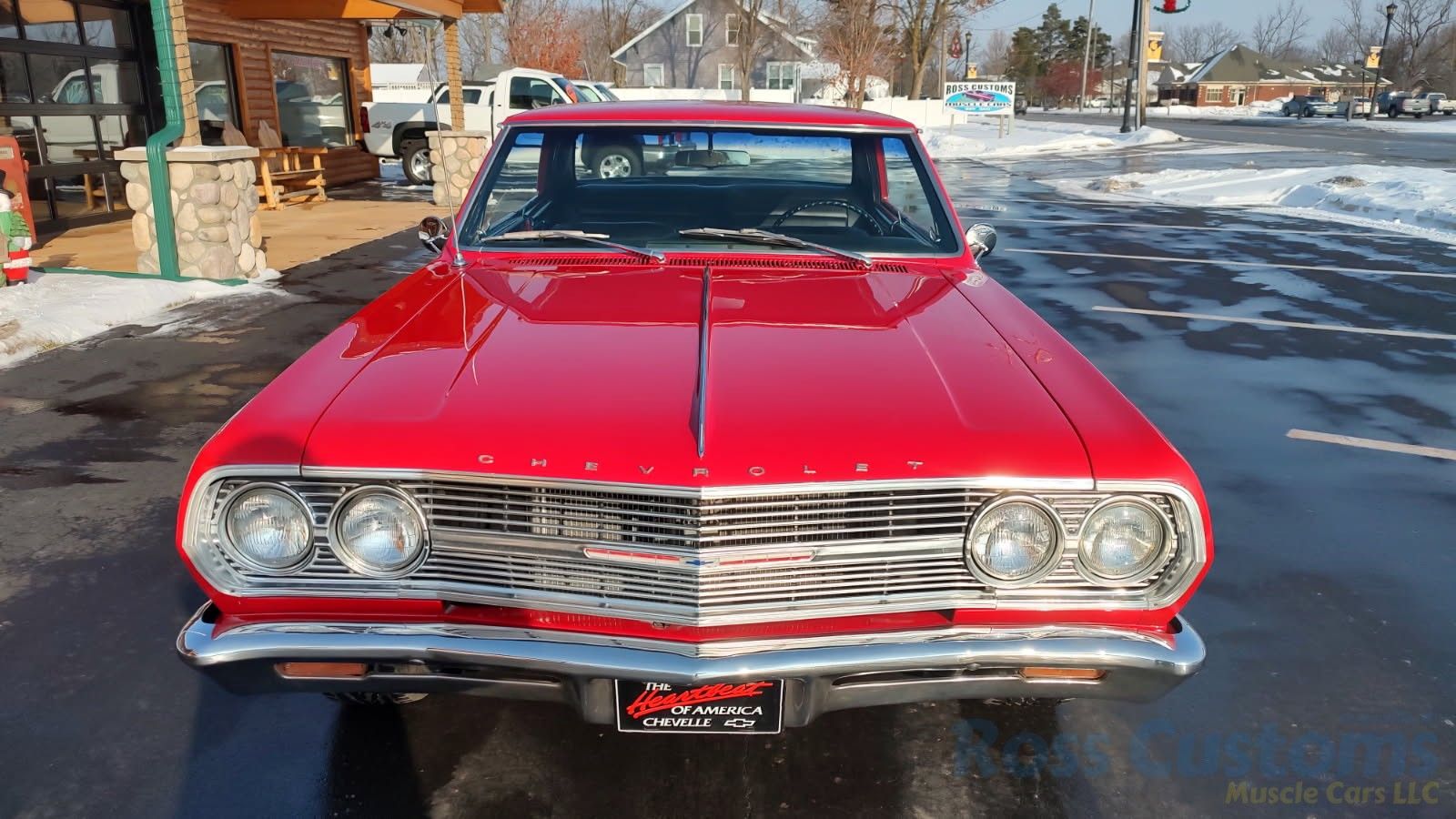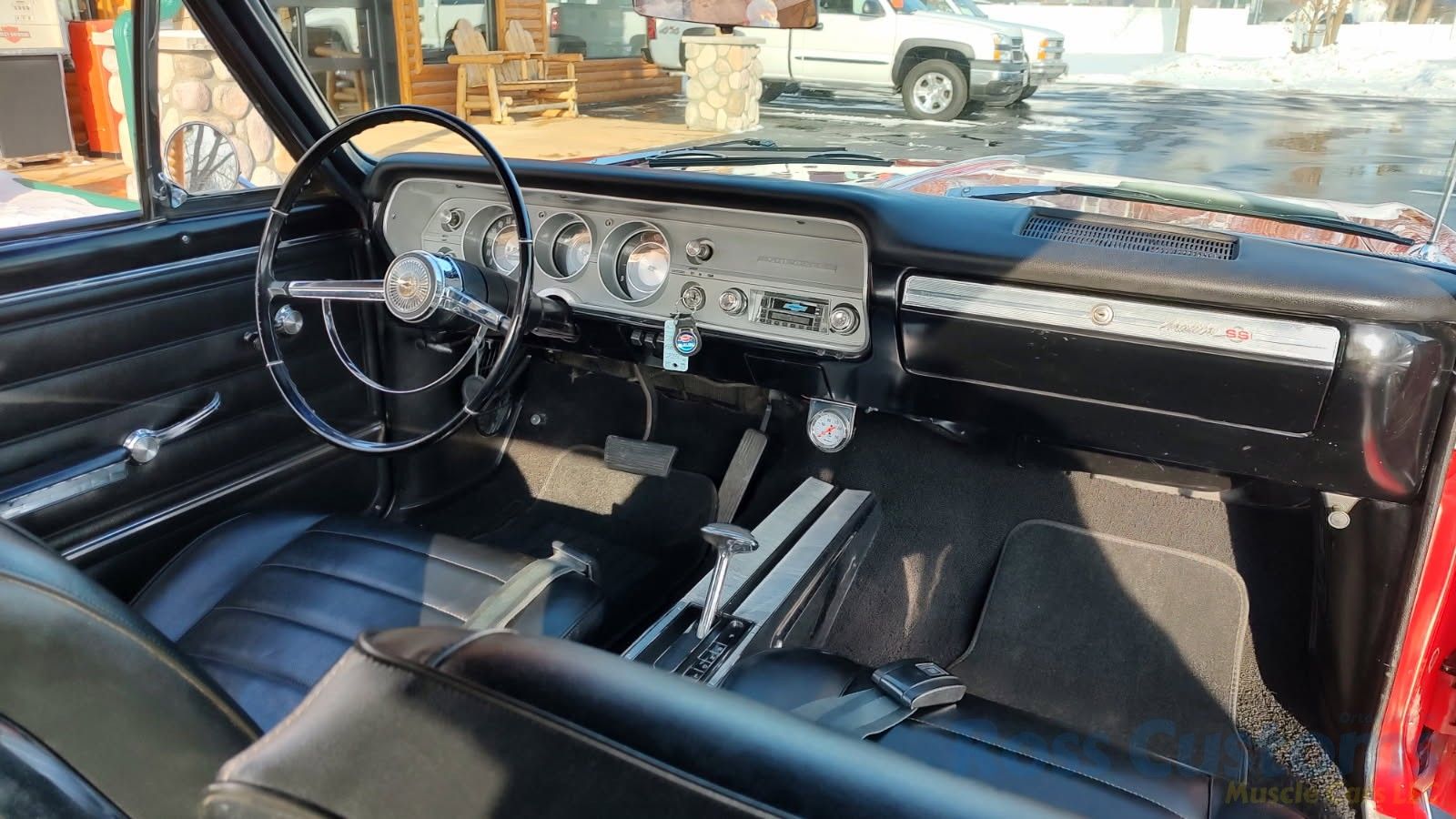 This is a very nice clean original panel 65 Chevelle SS done in Bolero Red, basecoat clearcoat, sanded and wheeled smooth, at time of restoration had new tinted windshield; all other glass is factory original in excellent condition, all original window stainless moldings and drip rail trim in very good condition, at time of restoration had new weather stripping and window felts, new sideview mirrors and door handles, new hood spear, new hood molding, grill, grill moldings, fender eye brow moldings and headlight bezels are all original in excellent condition, front bumper has been re-chromed, wheel well and rocker molding look like new, original Malibu SS emblems in very good condition, decklid trim and quarter trim are original in very good condition, new taillight lens, rear bumper appears to be re-chromed.