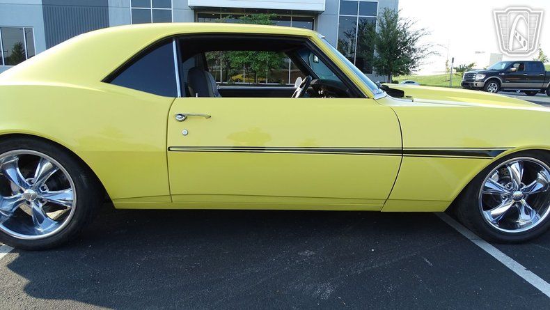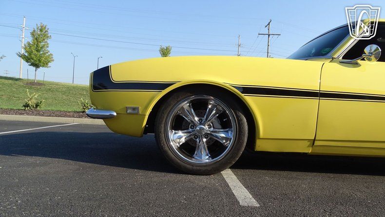 Introducing the 1968 Chevrolet Camaro Restomod, a classic beauty with a modern twist. This stunning vehicle is presented in a vibrant Daytona Yellow exterior color, a hue that is sure to turn heads wherever you go. The black and yellow leather interior adds a touch of luxury and sophistication, making every ride a pleasure.
