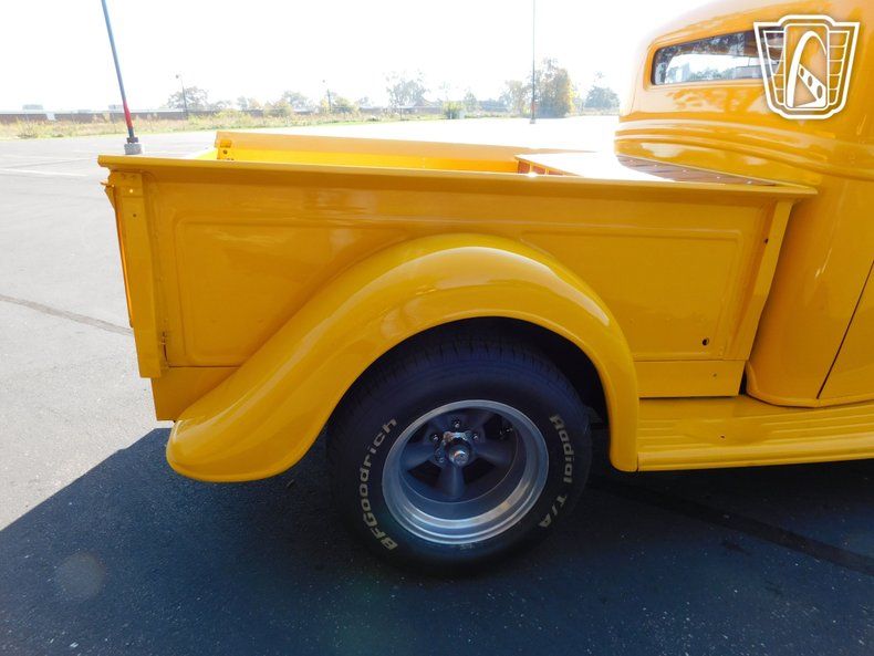 The 4-link suspension, 4:11 gears, and 9-inch Currie rear end offer exceptional handling and traction. Front disc brakes ensure reliable stopping power. Inside, the Lokar shifter with a shift indicator adds a touch of nostalgia, while the new polyurethane 12-gallon gas tank and cherry oak bed with a storage box showcase attention to detail.