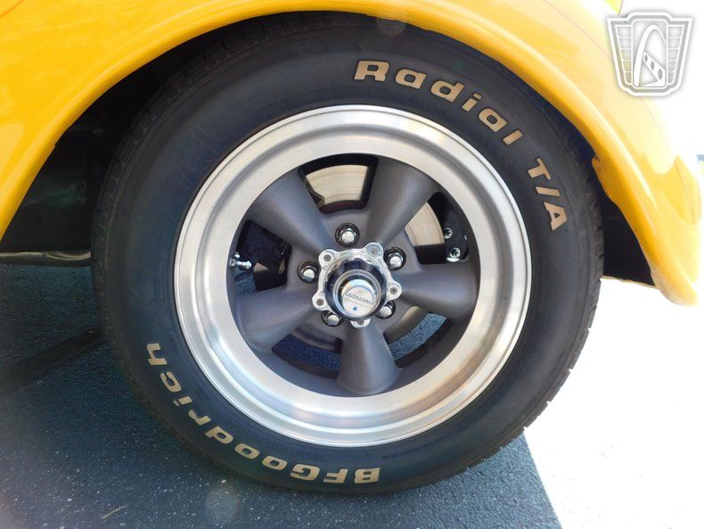 The addition of a Mustang Z front end, three two-barrel Holley carburetors, and a dual exhaust system not only enhances performance but also gives this hot rod a distinctive growl. Tinted power windows, a Sony stereo system, and Torque Thrust American Racing Rims further blend modern convenience and style.