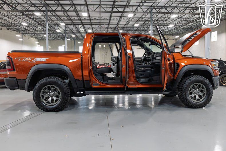 Gateway Classic Cars of San Antonio/Austin is excited to present this 2024 Ram TRX Final Edition. A Final Edition is offered exclusively for the 2024 model year, but only 4000 will be built. This TRX Final Edition is available in three exclusive colors: Delmonico Red, Night Edge Blue, and Harvest Sunrise that this one is finished in. Hiding between the TRX's bulging fenders and below its scooped hood is a supercharged Hemi 6.2-liter V-8. More popularly known as the Hellcat engine, this specific version produces 702 horsepower and 650 pound-feet of torque, which is sent to all four wheels through an eight-speed automatic transmission. The combination promises an exhilarating driving experience, whether you're navigating city streets or exploring off-road trails. Step inside to discover a carefully crafted interior with black leather-covered surfaces and a mix of microsuede and carbon-fiber accents. The cabin is equipped with a range of features designed to enhance your driving experience. Enjoy the convenience of digital rearview mirror, power sunroof a head-up display, and heated and ventilated front power seats with lumbar support, ensuring you remain comfortable on long journeys. Stay connected and entertained with the vertically mounted 12.0-inch touchscreen infotainment system. The unit boasts Apple CarPlay, Android Auto, built-in navigation, and SiriusXM satellite radio. The vehicle's advanced safety features, including anti-lock brakes, driver and passenger airbags, and seatbelts, provide peace of mind for you and your passengers. Traction control and performance tires work in harmony to deliver superior handling and stability, regardless of the driving conditions. This remarkable vehicle is not just about performance and luxury; it's about providing an unparalleled driving experience.