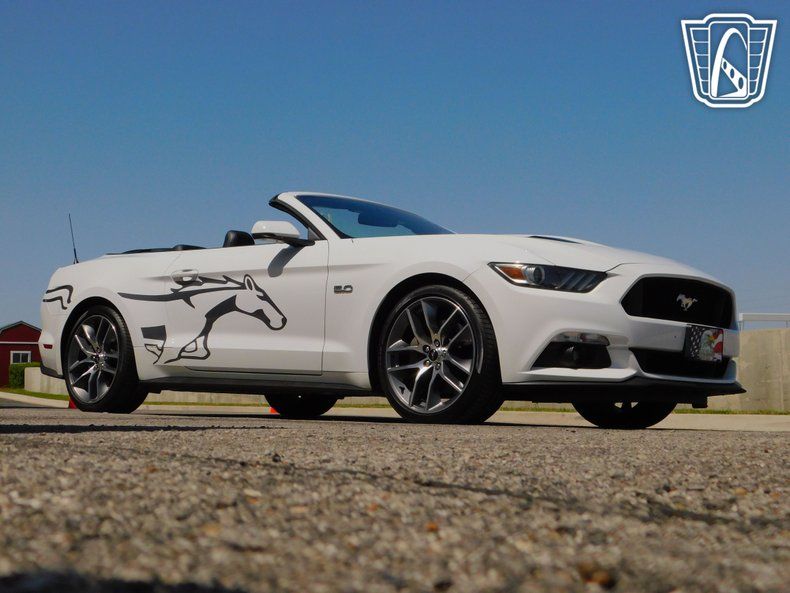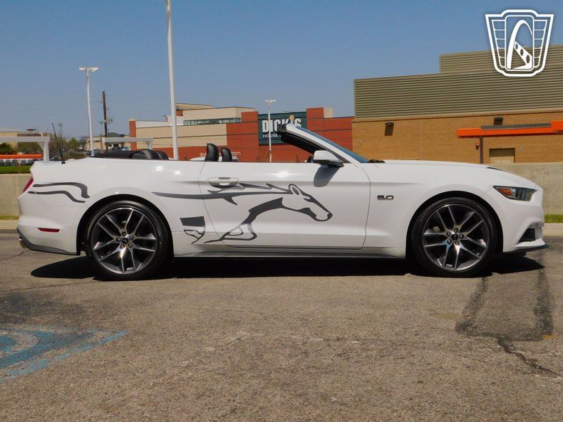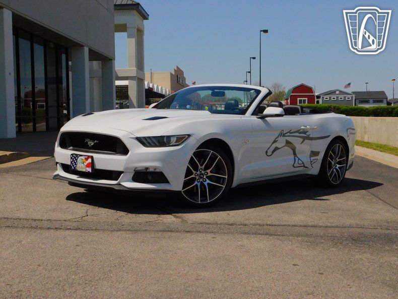 Gateway Classic Cars of Tulsa is proud to digitally represent this stunning 2015 Ford Mustang GT, a true icon of American muscle. This model boasts a striking white exterior, with Mustang graphics, that complements its sleek and sporty design. Step inside to find a luxurious black leather interior that offers both comfort and style, making every journey a pleasure. Under the hood, you'll discover the heart of this beast-a powerful 5-liter V8 engine paired with a automatic transmission, delivering an exhilarating driving experience that enthusiasts crave.