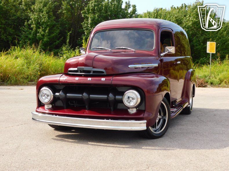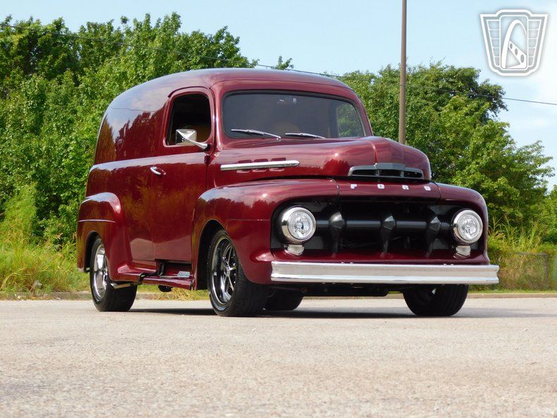 Gateway Classic Cars of Tulsa is proud to digitally represent a classic blend of vintage charm and modern convenience, this 1951 Ford F1 Panel is a standout vehicle that captures the essence of timeless design and contemporary functionality. With its striking maroon exterior, this Ford F1 Panel exudes a sense of elegance and sophistication that is sure to turn heads wherever it goes. The rich maroon hue is beautifully complemented by a luxurious tan leather interior, creating a warm and inviting atmosphere for both driver and passengers.