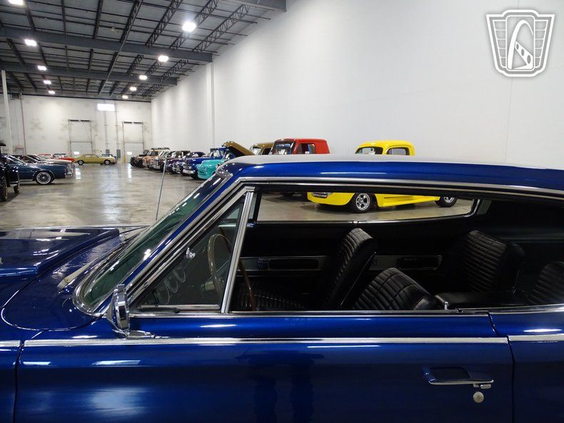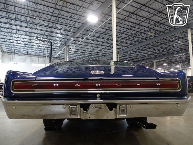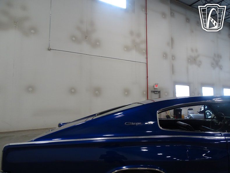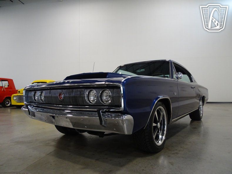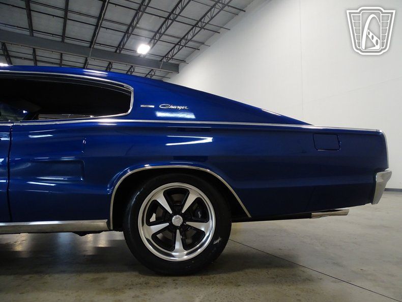 This 1966 Dodge Charger is painted in stunning electric blue with a beefy set of five-spoke alloy wheels. The unique black vinyl interior comes with a floor shifter, power windows, and a Sony AM/FM radio mounted in the glovebox. The interior was uniquely designed with four bucket seats and a center console that runs the length of the cockpit. Stressing the muscle car image, the Charger was only sold with four V-8 engine options. Distinguished by its fastback roofline, ""electric shaver"" front grille, and full width rear taillights this 1966 Dodge Charger is a head turner.