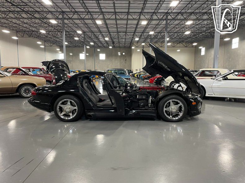 Gateway Classic Cars of San Antonio/Austin is excited to present this 1994 Dodge Viper featured in the classic Viper black over grey leather. The 1994 Viper was pure American muscle and unlike any other roadster of its time. It's very aggressive looking; packing a roaring 8.0-liter V10 engine with a T-56 6-speed manual transmission, it's loud, it's raw, handles like an IndyCar and really is the package deal! The look of the crossover tubes on the red intake manifold and the Viper engraved valve covers are a great touch. This Viper is packing 400 HP and was truly the fastest American sports car offered on the market for its time. The RT/10 is equipped with power-assisted rack-and-pinion steering, four-wheel independent suspension, a limited-slip differential, an AutoForm body-color hardtop and windows, four-wheel vented disc brakes with Viper-branded calipers up front. The 17 5-spoke alloy wheels are wrapped in Michelin Pilot Sport tires, 285/40s in the front and 335/35s in the rear. The three-spoke leather-wrapped steering wheel frames a 180-mph speedometer and a tachometer with a 6k-rpm red line. Auxiliary gauges for coolant temperature, oil pressure, fuel level, and voltage are mounted atop the center stack. The six-digit odometer shows just over 81k miles. Given the styling, outrageous performance and value, these halo cars truly are an affordable classic, and one of the purest supercars you're ever likely to own.