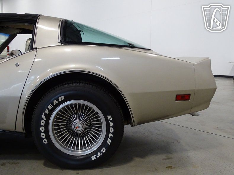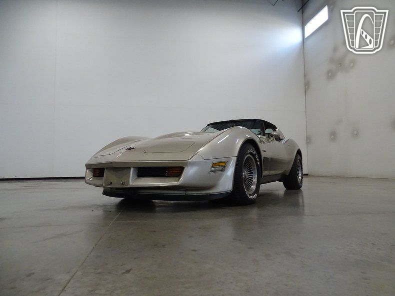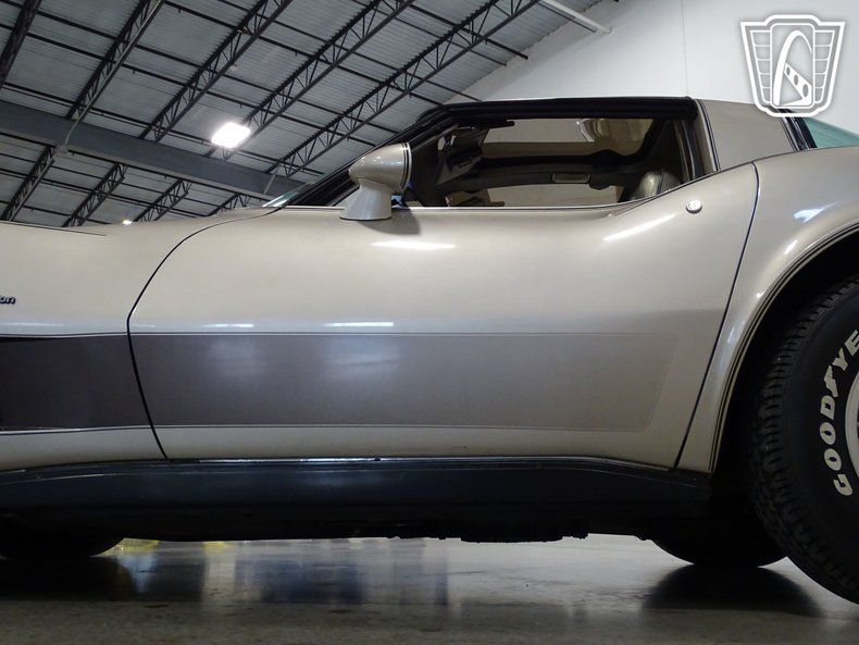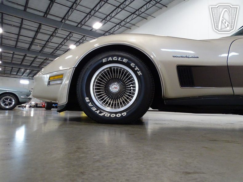 This 1982 Chevrolet Corvette Collector's Edition is painted in striking ""Silver Beige"" or ""Champagne"" as a one year only color scheme. Dark brown graphics, a special set of turbine-vane alloy wheels, and bronze tinted glass T-Tops define this unique collector's package. The inviting interior comes with silver-beige leather seating and all the high-end options including a leather wrapped steering wheel, air conditioning, power windows, power locks, power mirrors, power driver's seat, opening rear glass, tilt/ telescopic steering wheel, rear defogger, and an AM/FM radio. Under the hood of this beauty is a 350 Crossfire Injection System V-8 consisting of two throttle bodies, attached to a 700-R4 automatic transmission. This Special Edition was the first fuel injected engine to be used in a Corvette in nearly two decades. Only 6,754 of these1982 Collector's Editions were made, making this Corvette a very desirable classic car.
