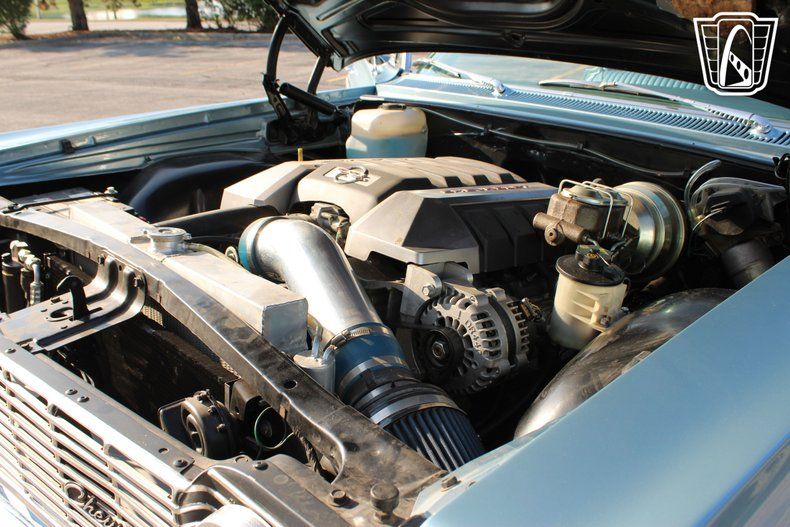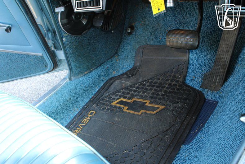 Inside, the Impala SS features a beautifully coordinated blue interior that complements its exterior, offering a cohesive and stylish driving experience. The cabin is equipped with an AM/FM radio, allowing you to enjoy classic tunes or your favorite stations as you cruise down the boulevard.