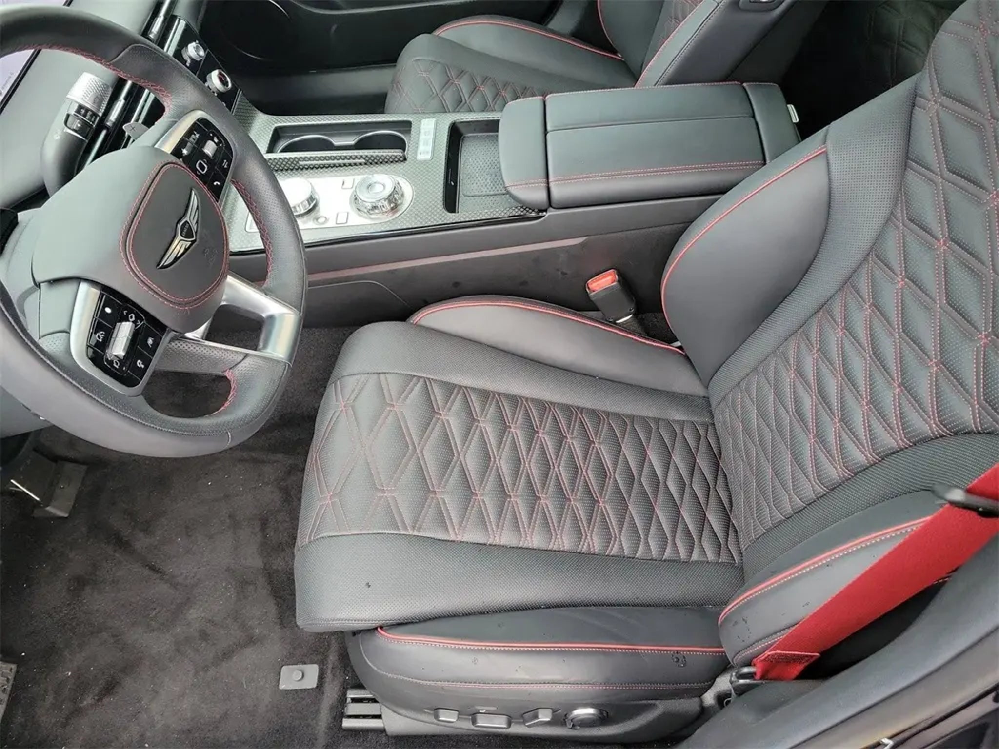 The price does not include tax, tag, license, an electronic filing fee of $449.00**, a private tag agency fee of $199.00**, and a predelivery service charge of $1199.00** **This charge represents costs and profit to the dealer for items such as inspecting, cleaning, and adjusting vehicles, as well as preparing documents related to the sale. * EPA-estimate metric: these are contingent on ideal conditions within a lab. Real-world situations such as carrying passengers or cargo, using climate control, driving style, and ambient temperatures can affect actual metrics. 16/24 City/Highway MPG Certified. Capri Blue 2025 Genesis G80 3.5T SPORT PRESTIGE AWD 8-Speed Automatic 3.5L V6 PDI Turbocharged DOHC 24V LEV3-ULEV50 375hp This vehicle comes equipped with Option Group 01, Genesis Certified Certified, 18 Speakers, 4-Wheel Disc Brakes, ABS brakes, Adaptive suspension, Air Conditioning, Alloy wheels, AM/FM radio: SiriusXM, Android Auto & Apple CarPlay, Anti-whiplash front head restraints, Auto High-beam Headlights, Auto tilt-away steering wheel, Auto-dimming door mirrors, Auto-dimming Rear-View mirror, Automatic temperature control, Bumpers: body-color, Cargo Blocks, Compass, Delay-off headlights, Driver door bin, Driver vanity mirror, Dual front impact airbags, Dual front side impact airbags, Electronic Stability Control, Emergency communication system: Genesis Connected Services, Exterior Parking Camera Rear, First Aid Kit, Four wheel independent suspension, Front anti-roll bar, Front Bucket Seats, Front Center Armrest, Front dual zone A/C, Front reading lights, Fully automatic headlights, Garage door transmitter: HomeLink, Heads-Up Display, Heated door mirrors, Heated front seats, Heated rear seats, Heated steering wheel, Illuminated entry, Knee airbag, Leather steering wheel, Low tire pressure warning, Memory seat, Nappa Leather Seating Surfaces, Navigation System, NFC Key Card, Occupant sensing airbag, Outside temperature display, Overhead airbag, Overhead console, Panic alarm, Passenger door bin, Passenger vanity mirror, Power door mirrors, Power driver seat, Power moonroof, Power passenger seat, Power steering, Power windows, Radio data system, Rain sensing wipers, Rear air conditioning, Rear anti-roll bar, Rear reading lights, Rear seat center armrest, Rear side impact airbag, Rear Window Blind, Rear window defroster, Remote keyless entry, Security system, Speed control, Speed-sensing steering, Speed-Sensitive Wipers, Steering wheel memory, Steering wheel mounted audio controls, Tachometer, Telescoping steering wheel, Tilt steering wheel, Traction control, Trip computer, Turn signal indicator mirrors, Variably intermittent wipers, Ventilated front seats, and Wheel Locks . Odometer is 2467 miles below market average! Genesis Certified Details: * Powertrain Limited Warranty: 120 Month/100,000 Mile From original in-service date & zero (0) miles * Warranty Deductible: $50 * 191 Point Inspection * Includes 10-year/Unlimited mileage Roadside Assistance with Rental Car & Trip interruption reimbursement, see dealers for specific vehicle eligibility. 3 yrs complimentary Genesis Connected Services. * Transferable Warranty * Vehicle History * Limited Warranty: 72 Month/75,000 Mile From original in-service date & zero (0) miles * Roadside Assistance