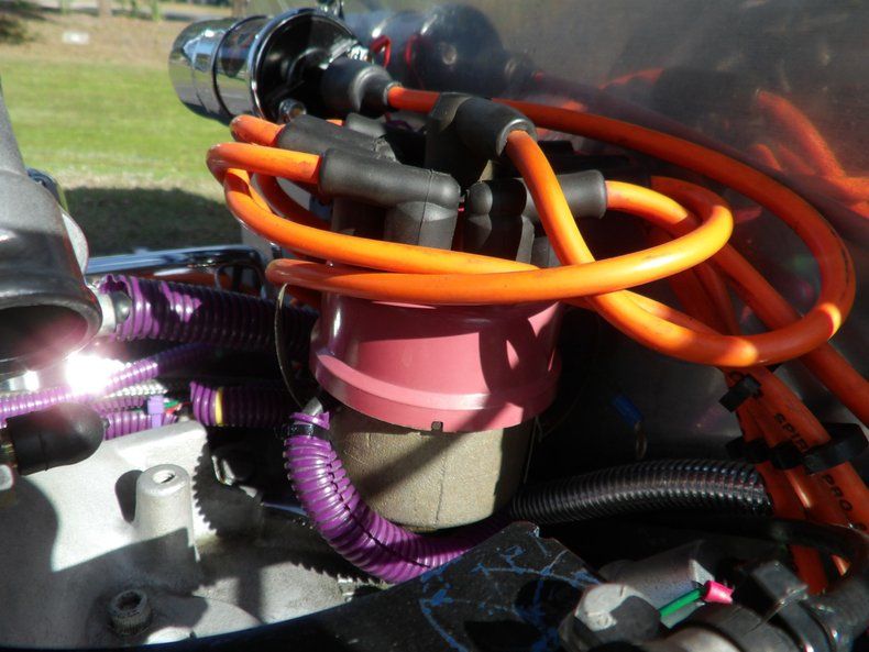 The 327 CID V8 engine is built with a Holley Dominator intake manifold, Holley 4-barrel carburetor, Pertronix Flame Thrower HEI distributor, aluminum radiator with electric fan, and chrome headers side pipe headers. That power is transferred to a Turbo 350 3-speed automatic transmission.