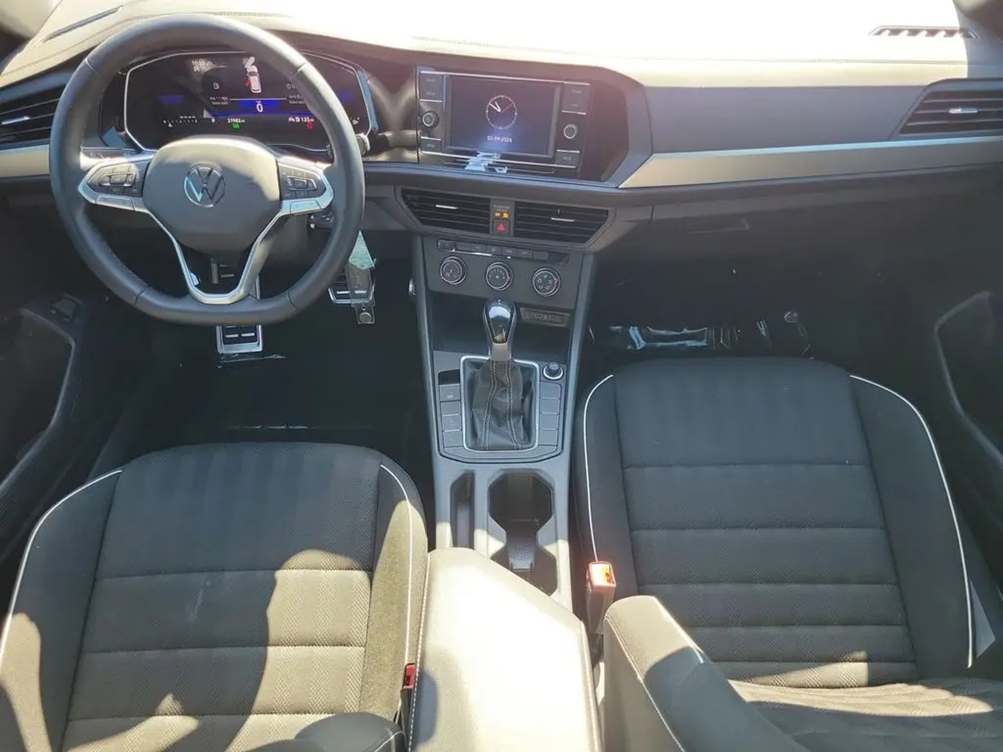 2023 Volkswagen Jetta 1.5T Sport CARFAX One-Owner. Odometer is 2313 miles below market average! 29/40 City/Highway MPG Equipped with 4 Speakers, 4-Wheel Disc Brakes, ABS brakes, Air Conditioning, Alloy wheels, AM/FM radio, Brake assist, Bumpers: body-color, Cloth Seat Trim, Delay-off headlights, Driver door bin, Driver vanity mirror, Dual front impact airbags, Dual front side impact airbags, Electronic Stability Control, Emergency communication system: VW Car-Net Safe & Secure 5-year, Exterior Parking Camera Rear, Front anti-roll bar, Front Bucket Seats, Front Center Armrest, Front Comfort Sport Seats, Front wheel independent suspension, Fully automatic headlights, Heated door mirrors, Illuminated entry, Low tire pressure warning, Occupant sensing airbag, Outside temperature display, Overhead airbag, Overhead console, Panic alarm, Passenger door bin, Passenger vanity mirror, Power door mirrors, Power steering, Power windows, Radio data system, Radio: MIB3 Composition Color w/6.5 Touchscreen, Rear anti-roll bar, Rear reading lights, Rear seat center armrest, Rear window defroster, Remote keyless entry, Speed control, Speed-sensing steering, Split folding rear seat, Steering wheel mounted audio controls, Tachometer, Telescoping steering wheel, Tilt steering wheel, Traction control, Trip computer, Variably intermittent wipers, and Wheels: 17 2-Tone Machined Alloy. Sale price shown excludes $989.00 Predelivery Service Charge, $395.00 Electronic Registration Filing Fee, all government fees, registration fees, titling fees, and Sales Tax VAUTO USED.