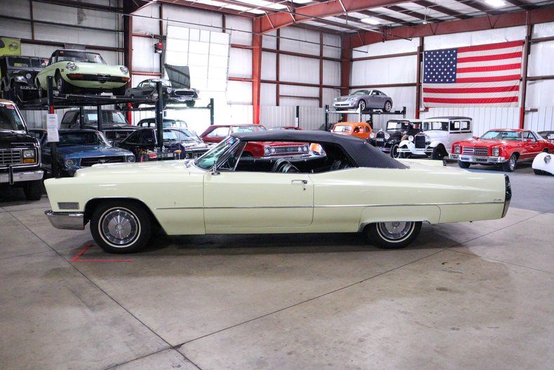 GR Auto Gallery is pleased to present this stunning 1967 Cadillac de Ville Convertible for your consideration. This classic beauty embodies the elegance and grandeur that Cadillac is renowned for, featuring a commanding presence that turns heads wherever it goes. With its iconic Persian Ivory exterior paint, this de Ville is a true testament to American automotive excellence. Under the hood, you'll find a strong 7.0L V8 engine paired with an automatic transmission, providing a smooth and powerful driving experience. The engine was expertly rebuilt in 2014. Accompanying the vehicle are receipts from the engine rebuild that detail additional engine specifications. This Cadillac effortlessly glides down the road, delivering a driving experience that is both powerful and refined. Step inside, and you'll be greeted by a clean and well-preserved interior. The seats are in great condition, offering comfort and style. The black interior enhances the classic look, complemented by the fully functioning power windows and a working radio that adds additional comfort to your drives. The power-operated soft top, which appears to have been recently replaced, is black and features a full glass rear window for improved visibility and aesthetics. The 1967 Cadillac de Ville Convertible has a rich history, representing the pinnacle of luxury and style during its era. Introduced in the mid-1960s, the de Ville line was celebrated for its innovative design and superior craftsmanship. Over the years, the Cadillac de Ville became an icon of American luxury, with the 1967 model year being particularly notable for its refined aesthetics and advanced features. This clean example stands as a testament to the enduring appeal and timeless elegance of Cadillac's flagship model. Please call or email with any questions or for additional information.