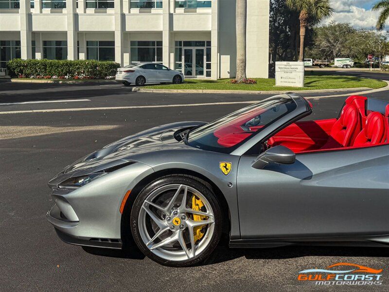 "2021 Ferrari F8 Spider. Grigio Titanio Metallic Exterior with Rosso Ferrari Leather Interior. Features Include: 710 Horsepower Twin Turbo 3.9L V8 Engine, Seven-Speed F1 Dual-Clutch Automatic Transmission, Magnetorheological Suspension Dampers, Suspension Lift, 20"" 5-Split-Spoke Silver Forged Wheels, CCM-Carbon Ceramic Brake System, Yellow Brake Calipers, Power Retractable Hard Top, Carbon Fiber Side Air Splitter, Suspension Lifter, Scuderia Ferrari Shields, Adaptive Frontlight System, Full LED Headlights & Turn Signals, LED Tail Lights, Front & Rear Parking Sensors, Rear Parking Camera, Carbon Fiber Steering Wheel + LEDs, Shift Paddles, Backrest In Leather, Back Radar, Carbon Fiber Central Bridge, Center Console In Leather, Colored Upper Dashboard, Leather Lower Dashboard, Cavallino Stitched on Headrest, Advanced Front Driving Camera, Additional Colored Matts With Logo, Inner Color Rear Leather Trim, Diamond Style For Seats, Leather Door Panel Central Trim, Door Panel Medalian in Leather, Parking Camera, White Rev Counter, Full Electric Seats, Red Air Vent Grip on Dashboard, Colored Special Stitching, Colored Steering Wheel, SiriusXM Radio Capable, Smartphone Integration, Bluetooth Phone & Audio, Navigation, HomeLink, Dual Zone Automatic Climate Control. Priced at only $419,995. Financing and leasing available. We ship worldwide. We pay top dollar for lightly used sports cars, Call or text Our Product Specialist today at 239-522-2262 or email at sales@gcmworks.com. Fees and Taxes: $1199.00 Doc Fee on all Purchases. Out of state buyers are responsible for all state, county, city taxes and fees, as well as title/registration fees in the state that the vehicle will be registered. -- INSTALLED FEATURES: Air filtration, Front air conditioning: automatic climate control, Front air conditioning zones: dual, Airbag deactivation: occupant sensing passenger, Front airbags: dual, Side airbags: front / head protection chambers, Antenna type: diversity / element, Auxiliary audio input: Bluetooth / iPod/iPhone / jack / USB, Hard drive: 30GB, Radio: AM/FM / voice operated, Radio data system, Satellite radio: SiriusXM, Speed sensitive volume control, Total speakers: 6, ABS: 4-wheel, Braking assist, Cornering brake control, Electronic brakeforce distribution, Electronic parking brake, Front brake type: carbon ceramic disc, Power brakes, Premium brakes: Brembo, Rear brake type: carbon ceramic disc, Center console trim: leather, Dash trim: leather, Door sill trim: aluminum, Door trim: leather, Floor mat material: carpet, Floor material: carpet, Floor mats: front, Foot pedal trim: aluminum, Interior accents: aluminum, Steering wheel trim: leather, Capless fuel filler system, Cargo area light, Center console: front console with storage, Cruise control, Cupholders: front, Multi-function remote: keyless entry / panic alarm / trunk release, One-touch windows: 2, Overhead console: front, Power outlet(s): 12V front / USB front, Power steering: variable/speed-proportional, Power windows: lockout button, Push-button start, Reading lights: front, Rearview mirror: manual day/night, Steering wheel: tilt and telescopic, Steering wheel mounted controls: audio / paddle shifter / phone / voice control, Storage: door pockets, Tool kit, Vanity mirrors: passenger, Active grille shutters, Door handle color: body-color, Exhaust: dual tip, Exhaust tip color: stainless steel, Front bumper color: body-color, Grille color: black, Ground effects/lower spoilers, Mirror color: body-color, Rear bumper color: body-color, Rear spoiler: wing, Rear spoiler color: body-color, Rocker panel color: black, Window trim: black, Clock, Compass, Customizable instrument cluster, Digital odometer, External temperature display, Fuel economy display: MPG / range, Gauge: tachometer, Instrument cluster screen size: 5 in. (dual), Multi-function display, Trip odometer, Warnings and reminders: coolant temperature warning / lamp failure / low battery / low fuel level / low oil pressure / low washer fluid / maintenance due, Daytime running lights: LED, Exterior entry lights: approach lamps, Headlights: auto delay off / auto on/off / LED, Rear fog lights, Taillights: LED, Side mirror adjustments: power / power folding, Side mirrors: heated, Auto start/stop, Auxiliary oil cooler, Battery: maintenance-free, Battery saver, Drive mode selector, Limited slip differential: rear, Mid-mounted engine, Performance exhaust, Convertible rear window: glass, Convertible roof: power retractable hard top, Convertible roof wind blocker, Automatic hazard warning lights, Camera system: rearview, Crumple zones: front / rear, Emergency interior trunk release, Impact sensor: fuel cut-off, Parking sensors: rear, Rearview monitor: in dash, Rollover protection system, Emergency locking retractors: front, Front seatbelts: 3-point, Seatbelt force limiters: front, Seatbelt pretensioners: front, Seatbelt warning sensor: front, Driver seat manual adjustments: 4 / reclining, Front headrests: 2 / integrated, Front seat type: sport bucket, Passenger seat manual adjustments: 4 / reclining, Upholstery: premium leather, Anti-theft system: alarm / anti-tow sensor / interior motion sensor / perimeter alarm / vehicle immobilizer, Power door locks: auto-locking, Hill holder control, Stability control, Traction control, Active suspension, Driver adjustable suspension: ride control, Front shock type: monotube, Front spring type: coil, Front stabilizer bar, Front struts, Front suspension classification: independent, Front suspension type: double wishbone, Rear shock type: monotube, Rear spring type: coil, Rear stabilizer bar, Rear suspension classification: independent, Rear suspension type: multi-link, Suspension control: magnetic, Tuned suspension: sport, Electronic messaging assistance: voice operated / with read function, Hands-free phone call integration: voice operated, Navigation data: real time traffic, Navigation system: hard drive / voice operated, Wireless data link: Bluetooth, Spare tire