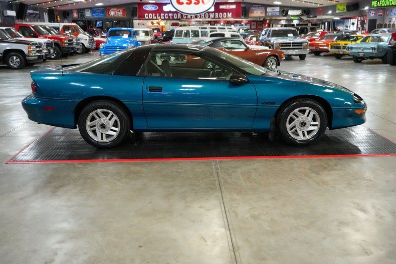 This 1994 Chevrolet Camaro Z/28 is a clean, low-mileage example of 90s American muscle, showing just 54K original miles and backed by a Clean CarFax. Powered by a strong 5.7L LT1 V8 paired to a 4L60E automatic transmission and POSI rear end with 2.80 gears, this Z/28 delivers smooth performance. Finished in eye-catching Teal paint with T-Tops, it features a well-preserved Gray cloth interior and rides on 16" OEM aluminum alloy wheels wrapped in Hankook Ventus V2 Concept 2 tires. Comfort options include air conditioning, power windows, and power locks, making this classic both collectible and enjoyable to drive. THIS VEHICLE QUALIFIES FOR FREE SHIPPING AND A WARRANTY!!
