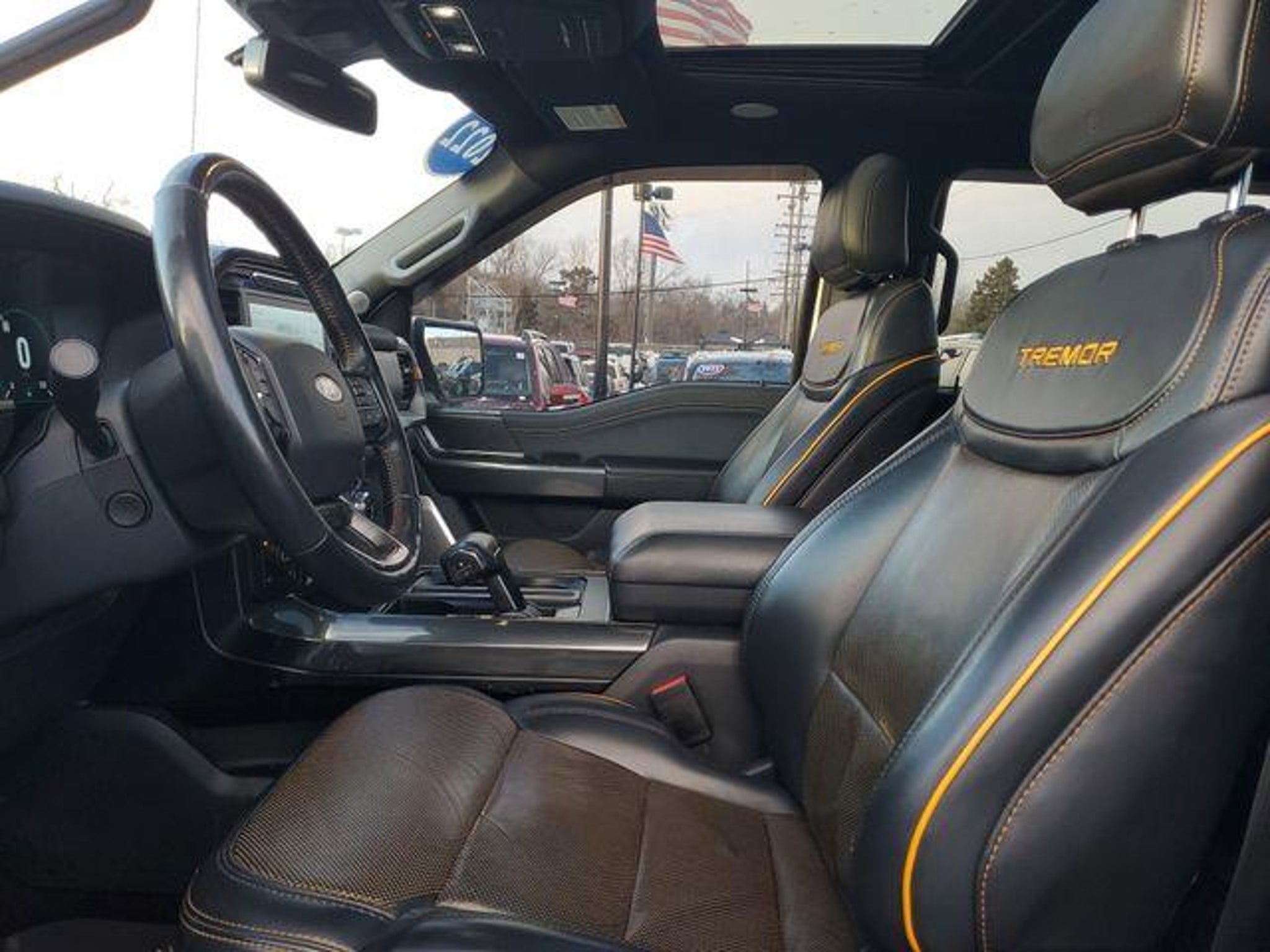 4WD, 12 Productivity Screen in Instrument Cluster, 2nd Row Heated Seats, 360 Degree Camera, 4-Wheel Disc Brakes, 6 Speakers, ABS brakes, Active Park Assist 2.0, Advanced Security Pack, Air Conditioning, Alloy wheels, AM/FM radio: SiriusXM with 360L, Ambient Lighting, Auto High Beam, Auto High-beam Headlights, Auto Start-Stop Removal, Bed Utility Package, BlueCruise, Body-Color Door Handles w/Body-Color Bezel, BoxLink, Brake assist, Bumpers: body-color, Carpeted Floor Mats w/Tremor Logo, Class IV Trailer Hitch Receiver, Compass, Connected Built-In Navigation (DISC), Delay-off headlights, Driver door bin, Dual front impact airbags, Dual front side impact airbags, Dual Zone Electronic Automatic Temperature Control, Electronic Locking w/3.73 Axle Ratio, Electronic Stability Control, Emergency communication system: SYNC 4 911 Assist, Equipment Group 402A High, Evasive Steering Assist, Extended Range 36 Gallon Fuel Tank, Exterior Parking Camera Rear, Ford Co-Pilot360 Active 2.0, Ford Co-Pilot360 Assist 2.0 (DISC), Front anti-roll bar, Front Bucket Seats, Front Center Armrest, Front fog lights, Front reading lights, Front wheel independent suspension, Front-Axle w/Torsen Differential, Fully automatic headlights, GVWR: 7,050 lbs Payload Package, Heated door mirrors, Heated Steering Wheel, Illuminated entry, Integrated Trailer Brake Controller, Intelligent Access w/Push Button Start, Intelligent Adaptive Cruise Control w/Stop & Go, Intersection Assist, Lane-Keeping System, Leather-Wrapped Steering Wheel, LED Box Lighting, LED Projector w/Dynamic Bending Headlamps, LED Sideview Mirror Spotlights, Low tire pressure warning, Navigation system: Connected Navigation, Occupant sensing airbag, Onboard 400W Outlet, Outside temperature display, Overhead airbag, Overhead console, Panic alarm, Partitioned Lockable Fold-Flat Storage, Passenger door bin, Passenger vanity mirror, Power door mirrors, Power Glass Sideview Mirr w/Body-Color Skull Caps, Power steering, Power Tailgate, Power Tilt/Telescoping Steering Column w/Memory, Power windows, Power-Adjustable Pedals, Power-Sliding Rear Window, Pre-Collision Assist w/Automatic Emergency Braking, Pro Trailer Backup Assist, Radio data system, Radio: AM/FM SiriusXM w/360L, Radio: B&O Sound System by Bang & Olufsen, Radio: B&O Unleashed Sound System by Bang & Olufsen, Rain-Sensing Wipers, Rear reading lights, Rear step bumper, Rear Under-Seat Storage, Rear window defroster, Rear-View Camera, Remote keyless entry, Remote Start System w/Remote Tailgate Release, Reverse Sensing System