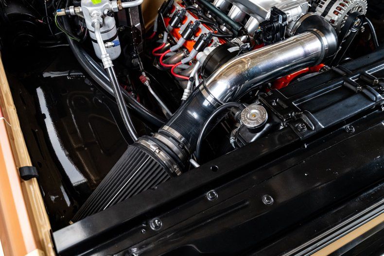 Power comes from a fuel-injected 5.3L Vortec V8 fitted with a Brian Tooley Stage 3 cam and matching springs. It pulls hard and gives the truck the kind of attitude you can hear even at idle. Induction runs through an ICT intake manifold, and exhaust exits through Speed Engineering long-tube headers, dual pipes, Flowmaster 40 Series mufflers, and electronic cutouts for instant decibel control. Cooling, wiring, accessories, and fans are updated to modern spec. A 4L60E 4-speed automatic with a performance shift kit handles the gears, sending power to a 12-bolt rear axle loaded with an Auburn limited-slip differential and 4.10 gears.