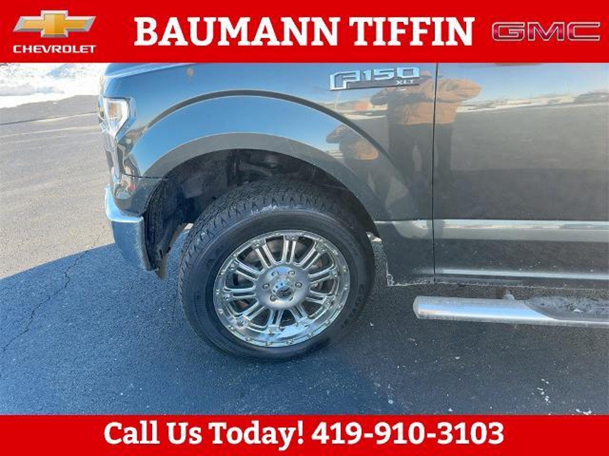 Guard Metallic 2015 Ford F-150 XLT 4D SuperCrew 5.0L V8 FFV 6-Speed Automatic Electronic 4WD 4WD, 3.31 Axle Ratio, 4-Wheel Disc Brakes, ABS brakes, Accent-Color Step Bars, Air Conditioning, Black Billet Style Grille w/Body-Color Surround, Body-Color Door & Tailgate Handles, Body-Color Front & Rear Bumpers, Box Side Decal, Brake assist, Class IV Trailer Hitch Receiver, Compass, Driver door bin, Dual front impact airbags, Dual front side impact airbags, Electronic Stability Control, Front anti-roll bar, Front wheel independent suspension, Integrated Trailer Brake Controller, Low tire pressure warning, Occupant sensing airbag, Outside temperature display, Overhead airbag, Passenger door bin, Passenger vanity mirror, Power steering, Rear step bumper, Single-Tip Chrome Exhaust, Speed-sensing steering, Split folding rear seat, Tachometer, Telescoping steering wheel, Tilt steering wheel, Traction control, Unique Sport Cloth 40/Console/40 Front-Seats, Variably intermittent wipers, Voltmeter, Wheels: 18 6-Spoke Machined-Aluminum, XLT Sport Appearance Package, 4WD.