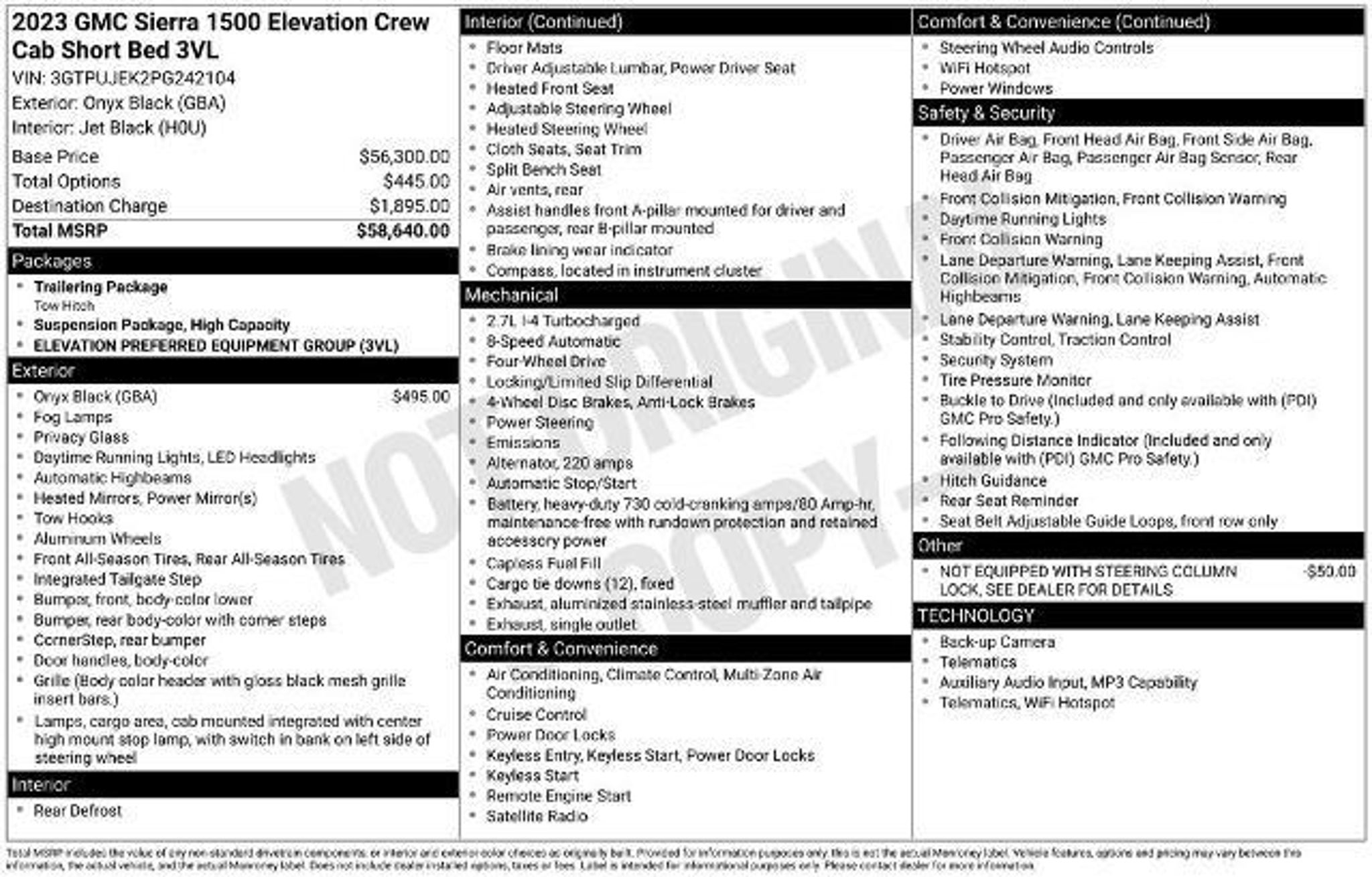 Onyx Black 2023 GMC Sierra 1500 Elevation 4WD 8-Speed Automatic 2.7L I4 Turbocharged DOHC 16V LEV3-ULEV50 310hp 8-Speed Automatic, 4WD, Black Cloth. Odometer is 12771 miles below market average! Your Hometown Dealer, No Matter Where Your Hometown May Be!