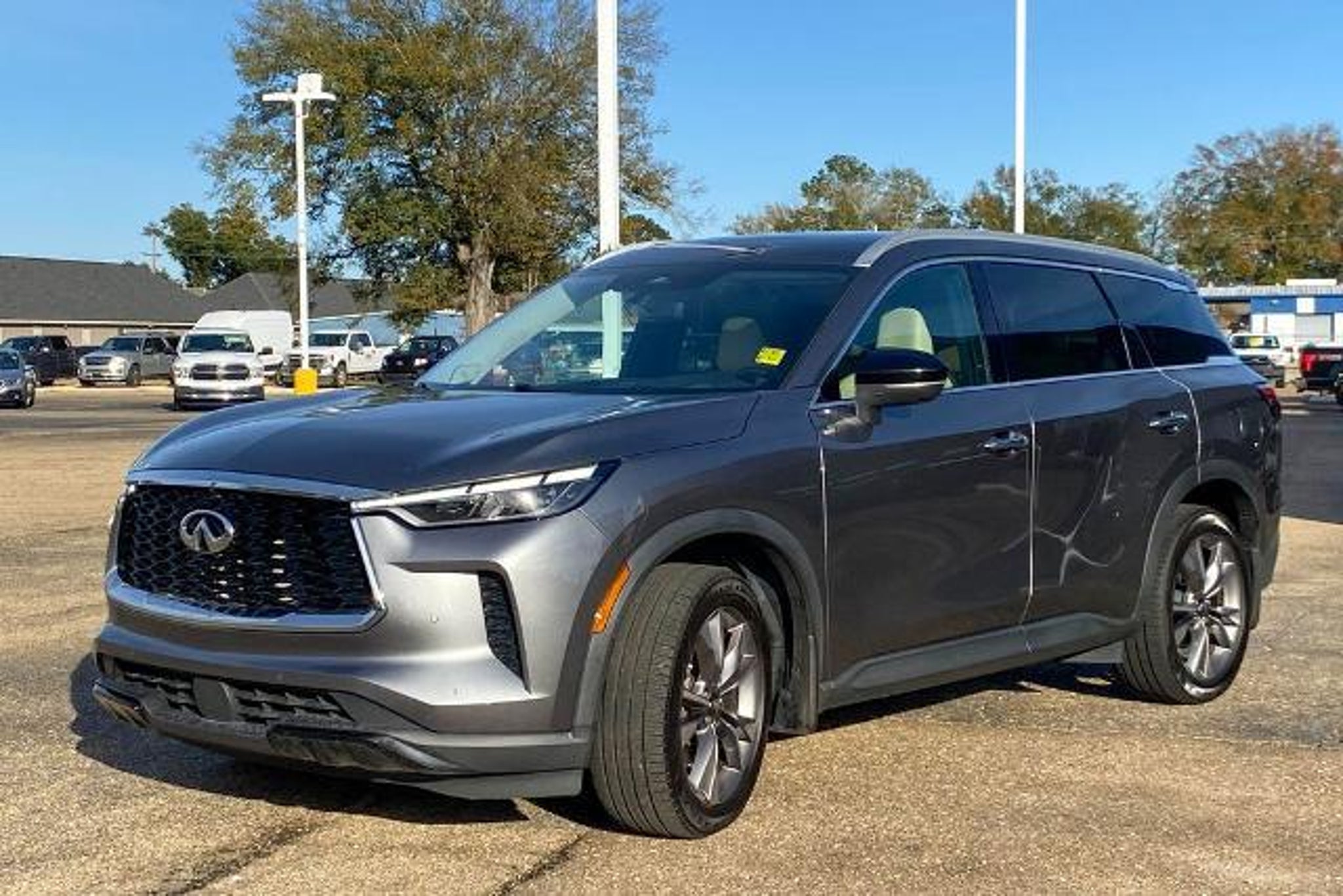 Discover the exceptional 2023 INFINITI QX60 LUXE, a sophisticated and dynamic SUV that seamlessly blends style, performance, and unparalleled comfort. This meticulously maintained vehicle is the perfect choice for discerning drivers seeking a premium driving experience. ? PASSED DEALERSHIP INSPECTION! ? VISION PACKAGE: Includes Smart Rear View Mirror, 10.8 Head-Up Display, Adaptive Front Lighting System, auto-leveling function ? PERFORMANCE AUDIO PACKAGE: Includes Bose Performance Series 17-Speaker Sound System ? CARGO PACKAGE: Includes cargo net, console net, trash bin, dividers, cargo blocks and rear bumper protector, First Aid Kit, Cargo Mat (Reversible) ? SPLASH GUARDS The QX60 LUXE is powered by a robust 3.5L V6 engine, delivering a smooth and responsive driving experience with its 9-speed automatic transmission and front-wheel drive configuration. Boasting an impressive 21 MPG in the city and 26 MPG on the highway, this SUV offers exceptional fuel efficiency without compromising performance. Stepping inside, you'll be captivated by the QX60's luxurious and meticulously crafted interior. Indulge in the comfort of the climate-controlled front bucket seats, while the Bose Performance Series 17-speaker sound system envelops you in a symphony of exceptional audio quality. The INFINITI InTouch navigation system and 10.8 head-up display keep you connected and informed, ensuring a seamless driving experience. This QX60 LUXE has been thoroughly inspected and certified by our experienced technicians, giving you the peace of mind that comes with owning a well-maintained vehicle. With its sleek Gray exterior and an array of advanced features, this SUV is a true testament to INFINITI's commitment to excellence. Discover the exceptional capabilities and refined elegance of the 2023 INFINITI QX60 LUXE. Contact us today to schedule a test drive and experience the difference for yourself. We're confident that this exceptional SUV will exceed your expectations and become the perfect companion for your adventures.