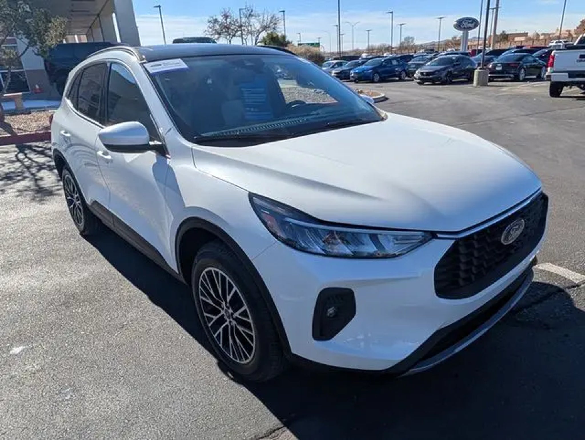 Discover the exceptional value and versatility of the 2025 Ford Escape Plug-In Hybrid Base. This remarkable SUV combines the convenience of a hybrid powertrain with the spaciousness and capability you demand. Boasting a sleek, modern design and a host of premium features, the Escape Plug-In Hybrid Base is the perfect blend of form and function. Key highlights of this well-equipped model include: - Fresh service, recent oil change, and passed dealer inspection - One-owner vehicle with a clean CARFAX report - Panoramic Vista Roof, power open/close with power shade - Class II Trailer Tow Package for added versatility - Heated Vinyl/Cloth Front Sport Contour Bucket Seats - Sync 4 with Enhanced Voice Recognition and Connected Navigation - Dual-zone automatic climate control and heated steering wheel Experience the seamless performance of the 2.5L iVCT hybrid powertrain, delivering responsive acceleration and impressive efficiency. The Escape Plug-In Hybrid Base's advanced technology and premium features create a driving experience that is both engaging and refined. This vehicle has been meticulously inspected and certified by our experienced technicians. You can trust that it has been thoroughly checked and is ready to provide years of reliable service. With low mileage and a comprehensive warranty, this Escape Plug-In Hybrid Base represents an exceptional value in the pre-owned market. Imagine yourself behind the wheel, enjoying the convenience of keyless entry, the clarity of the premium audio system, and the confidence of advanced safety features like Forward Collision Warning and Automatic Emergency Braking. The Escape Plug-In Hybrid Base is the perfect balance of style, technology, and capability. We invite you to experience the exceptional quality and value of this 2025 Ford Escape Plug-In Hybrid Base. Schedule a test drive today and discover why this SUV is the perfect fit for your lifestyle. Our knowledgeable sales team is here to assist you every step of the way, ensuring a seamless and enjoyable purchasing process.