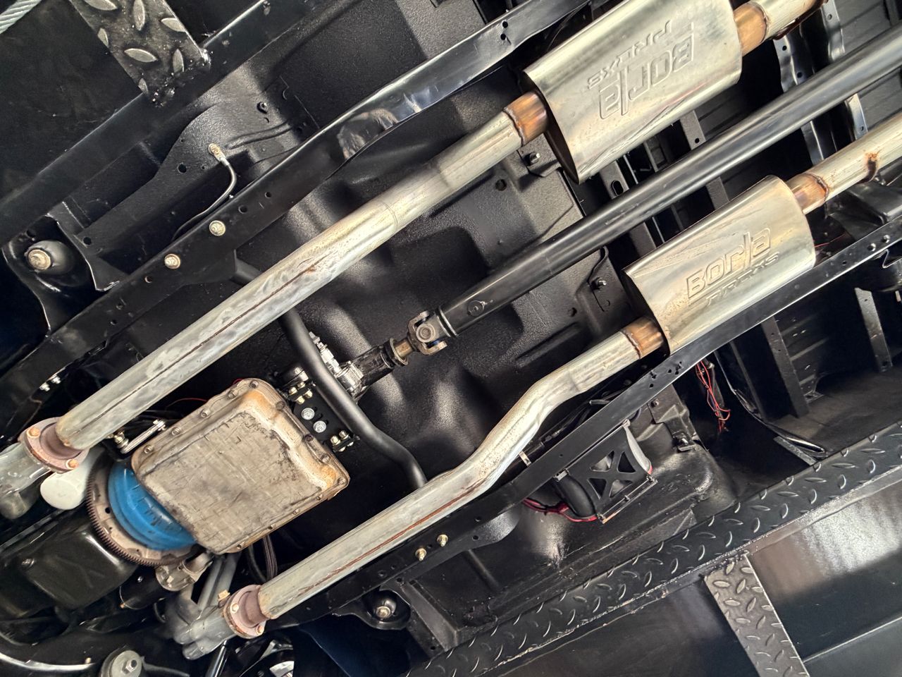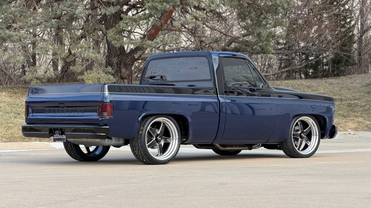 KC Classic Auto is proud to present this WICKED custom 1977 C10, A.K.A. Nyra!Comprehensive, frame-off, rotisserie restoration with under 1,100 miles since completion. During the restoration, the frame was disassembled, sandblasted and powder coated. The undercarriage was undercoated, the inside of cab and bed were Rhinolined, and sound deadening material was added throughout. Refinished in gorgeous blue and black two-tone with a silver accent stripe. New metal mini tub bed, 2 cowl hood, new bumpers, and custom grill. The bumpers were painted black, along with all trim and bezels. It also has black mirrors, black billet hood hinges, black door handles, etc.Beautiful custom TMI interior including seats, center console, door panels, dash, etc! Dakota Digital gauges, shoulder belts, Custom AutoSound AM/FM radio with auxiliary input, XM satellite radio receiver, 750-watt Kicker sound system including: subwoofer, amplifier, and 2 speakers behind the seats, and speakers in custom kick panel enclosures. Ididit tilt steering column, custom steering wheel, reverse camera with hidden screen in console, custom push button start, new weatherstripping, and tinted windows.The painted and smoothed engine bay houses a healthy 350ci/355hp GM V8 crate engine with Edelbrock 600cfm carburetor, billet serpentine system, ceramic coated long tube headers with Borla exhaust, large aluminum BeCool radiator with dual electric fans, electric water pump, etc! Power is sent to the ground via a 700R4 automatic overdrive transmission and 12-bolt rear end with 3.73 gears. Lowering springs and drop spindles make this C10 have the perfect stance!Vintage Air Conditioning and heat, CPP 4-wheel power disc brakes, power steering with PSC steering box, Ron Francis wiring harness, 22-gallon fuel tank in the frame under the bed with filler in the bed floor, Optima battery located on the passenger frame side, tri-fold bed cover (not pictured but included in the sale), custom LED headlights and LED sequential taillights.Sitting on set of brand new 22 Weld Ventura wheels with 265/35/22 and 315/30/22 Nitto tires. It previously had a set of color-keyed black/blue staggered 18/20 American Racing Torque Thrust wheels that can be put back on the truck if a potential buyer preferred them (see photos towards the end). Visit KC Classic Auto online at kcclassicauto.com to see more pictures of this vehicle or call us at 913-888-1234.