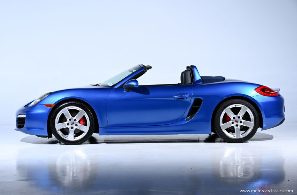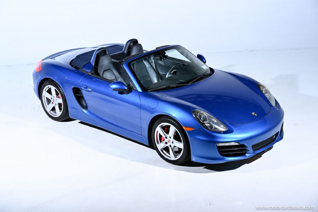 2014 Porsche Boxster S for sale! Finished in stunning Sapphire Blue Metallic with matching blue power soft top and black leather, this 2014 Porsche Boxster S is a two-owner, all-original example showing just 32,000 miles and presenting exactly as an enthusiast would hope. Powered by the upgraded 3.4-liter flat-six of the S model, it delivers 315 hp and 266 lb-ft of torque, paired here with the desirable Porsche Doppelkupplung (PDK) dual-clutch transmission for lightning-quick shifts and an exceptionally responsive driving experience. The S specification also brings larger brakes, sportier suspension tuning and stronger performance than the standard Boxster, further enhancing this roadster's balance of everyday usability and true sports car capability.