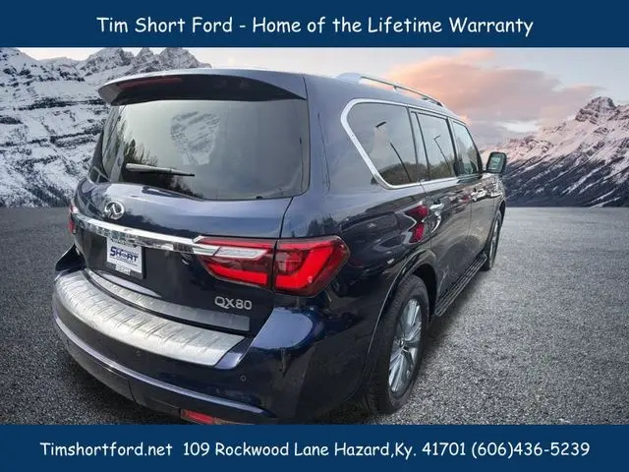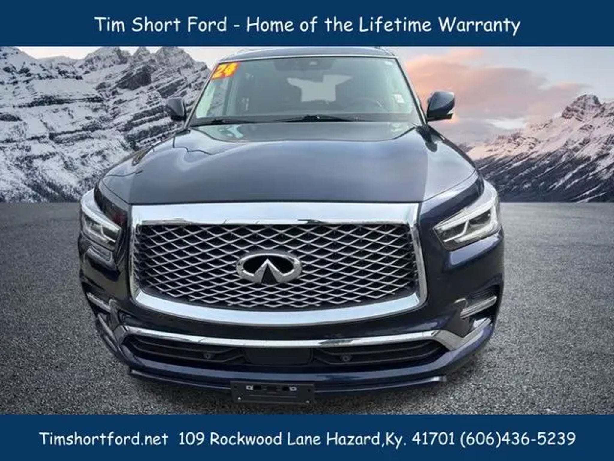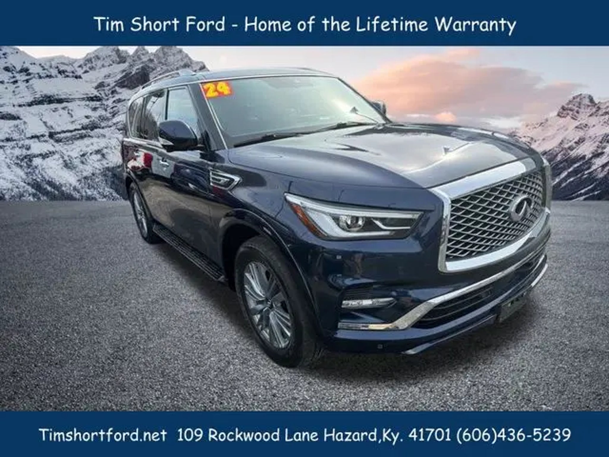 Hermosa Blue 2024 INFINITI QX80 LUXE 4WD 7-Speed Automatic 5.6L V8 *3RD ROW SEATING*, *4WD*, *CARFAX CERTIFIED/ACCIDENT FREE*, *FAMILY FRIENDLY*, *HEATED MIRRORS*, *HEATED SEATS*, *HEATED STEERING WHEEL*, *LEATHER*, *NAVIGATION/GPS*, *ONE OWNER*, *POWER SEATS*, *POWER WINDOWS*, *REAR BACK-UP CAMERA*, *REMOTE START*, *SUNROOF/MOONROOF*, **POWER LIFTGATE**, **WIRELESS PHONE CHARGING**, **BOSE AUDIO SYSTEM**, **APPLE CAR PLAY**, **ALEXA BUILT IN**, **BLIND SPOT MONITORING**, **LANE ASSIST**. Tim Short Ford Lincoln of 109 Rockwood Lane Hazard KY 41701 is pumped up to offer this fantastic-looking 2024 INFINITI QX80 in Hermosa Blue This vehicle has passed our comprehensive inspection and comes with the following features; Recent Arrival! Tim Short Ford-Lincoln of Hazard Ky 41701 is powered by you, our customer. We are here to make sure you are 100% satisfied. Visit us online at timshortford.net or call us at 606-436-5239 for the quickest response. ****Price listed includes $1000 financing incentive through Tim Short lenders. Take The SHORT drive To Satisfaction!